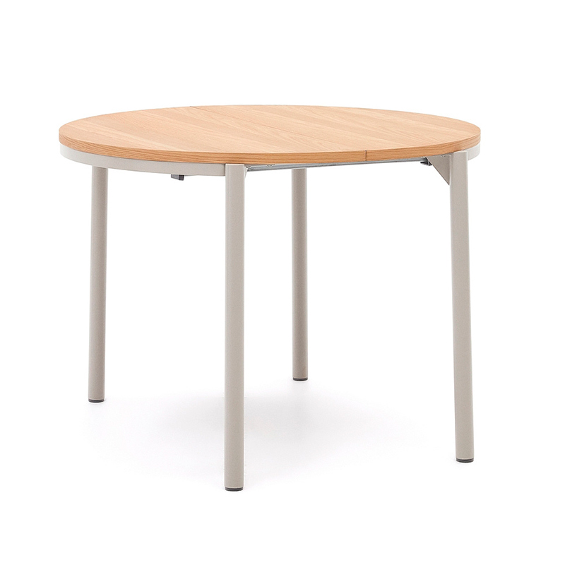Montuiri Круглый раздвижной стол из дубового шпона с ножками серого цвета, Ø90(130) см
