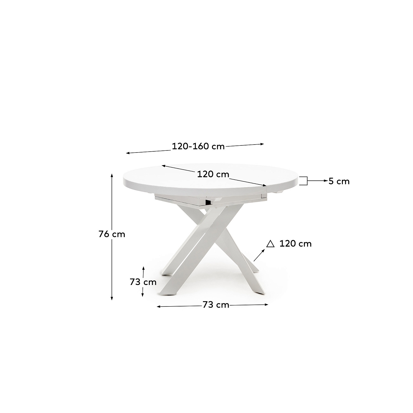Vashti Раздвижной стол из стекла и МДФ со стальными ножками белого цвета Ø 120(160)x120см