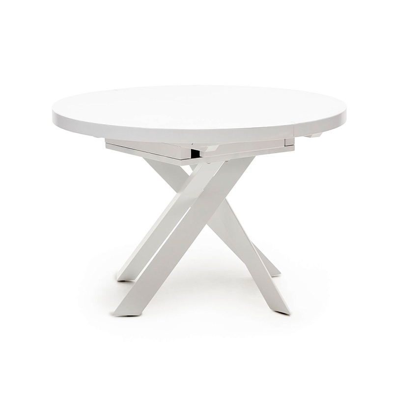 Vashti Раздвижной стол из стекла и МДФ со стальными ножками белого цвета Ø 120(160)x120см