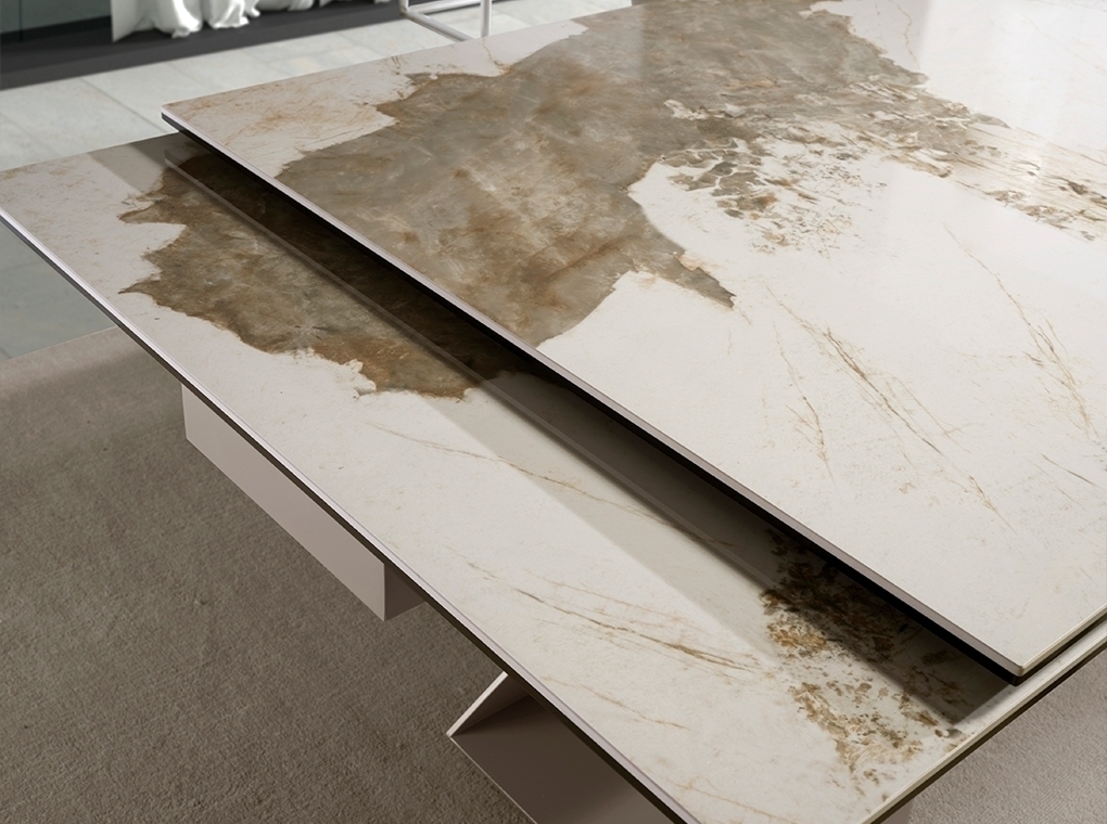Раздвижной обеденный стол 1117/MC22052DT-MARMOL из керамики в мраморной отделке и стали