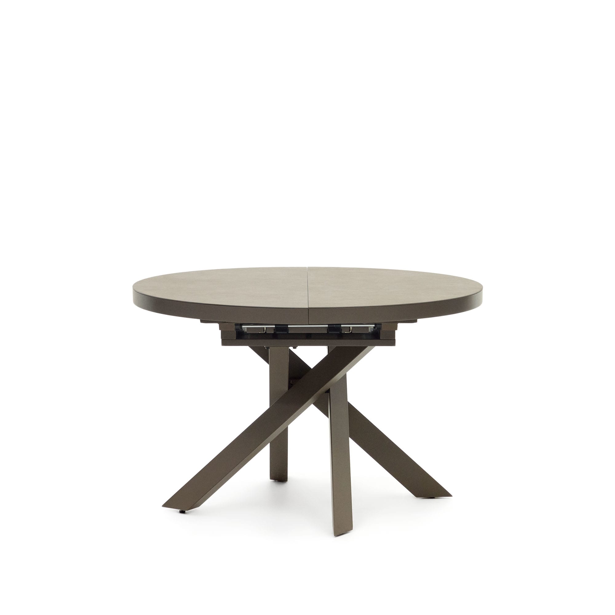 Vashti Круглый раздвижной стол из керамики и стали с коричневой отделкой Ø 120(160) см