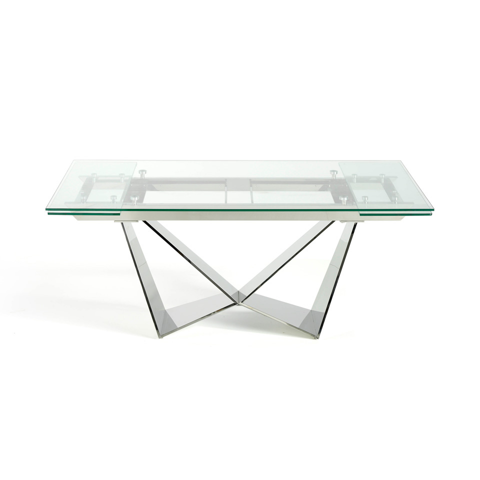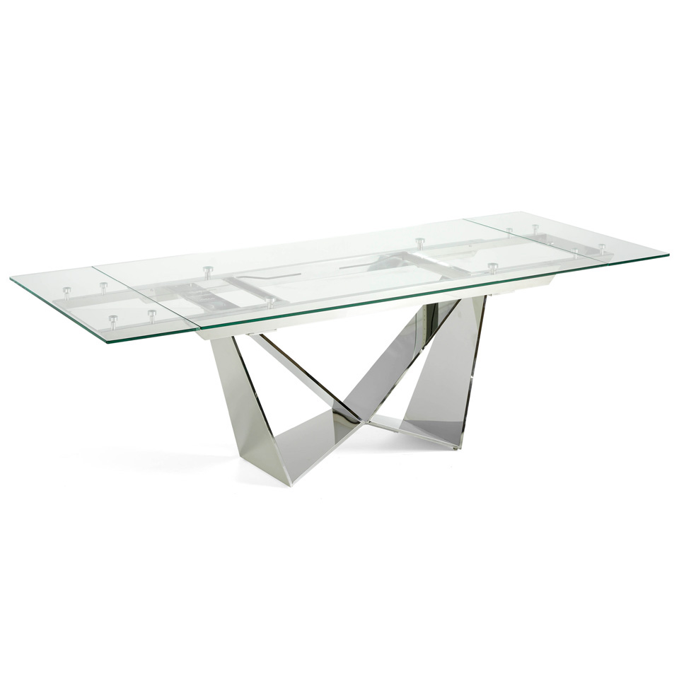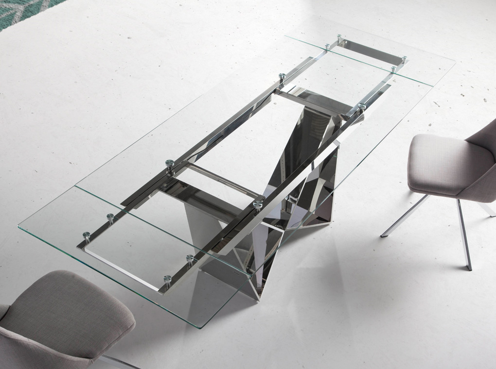 Запросить индивидуальное предложениеСтол CT2302 от фабрики Angel Cerda — ультрамодный дизайн и оригинальная конструкторская задумка. Стол удивляет и очаровывает с первого взгляда. В этой модели дизайнеры не скрывают конструкцию, а демонстрируют ее каждому, кто просто посмотрит на стол сверху. Но выставленная напоказ «начинка» вовсе не отталкивает, а наоборот, заставляет рассмотреть каждую деталь подробнее, чтобы разгадать устройство этого «технологичного» изделия. Стол сделан из хромированной стали и наделен раздвижной стеклянной столешницей. Благодаря реечному механизму удлинения, увеличить габариты стола просто и быстро — достаточно выдвинуть с обеих сторон дополнительные секции (они также видны под стеклом столешницы). Закаленное стекло имеет высокий предел прочности. Плюс к этому, его поддерживает каркас из металла. Поэтому, эту модель можно в полной мере использовать в качестве обеденного стола. Металлические ножки имеют необычную конструкцию. Оригинальная геометрия в сочетании с хромированной сталью образует удивительную игру отражений, еще более привлекая внимание к данной модели. Стол будет уместен в гостиной, выполненной в стиле модерн (с преобладанием мебели из стекла и металла), хай-тек, фьюжн. Цвета отделки указываются в соответствии с каталогом производителя. Допускается незначительное отклонение в цвете, обусловленное техническими особенностями цветопередачи фотографий.