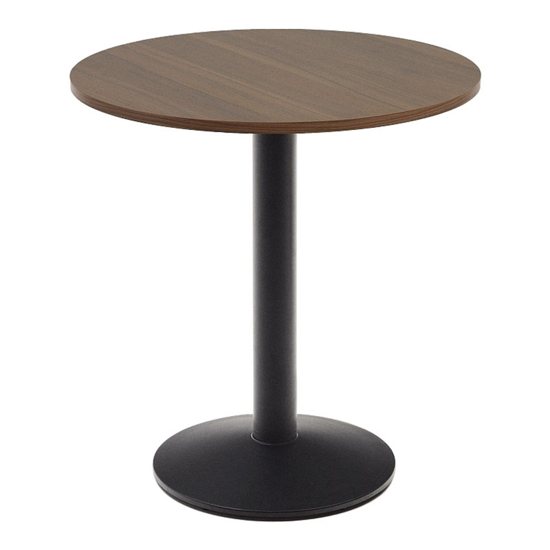 Esilda Круглый стол из меламина с ореховой отделкой и черной металлической ножкой Ø70x70