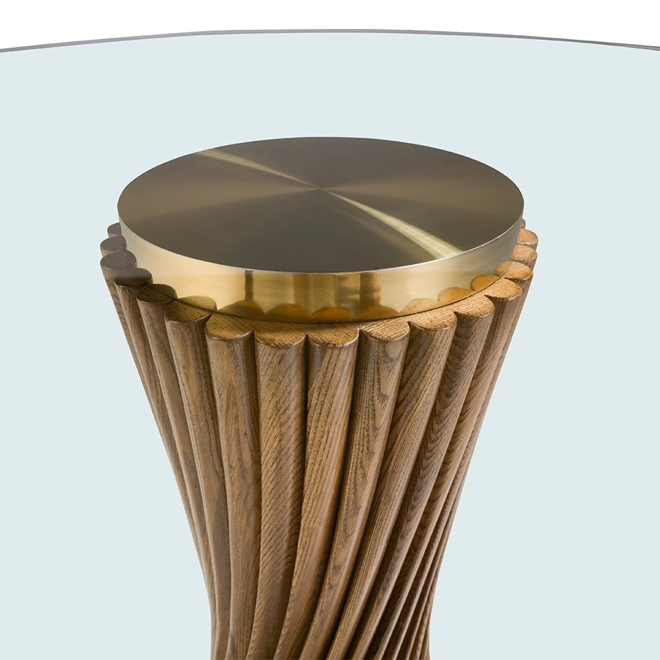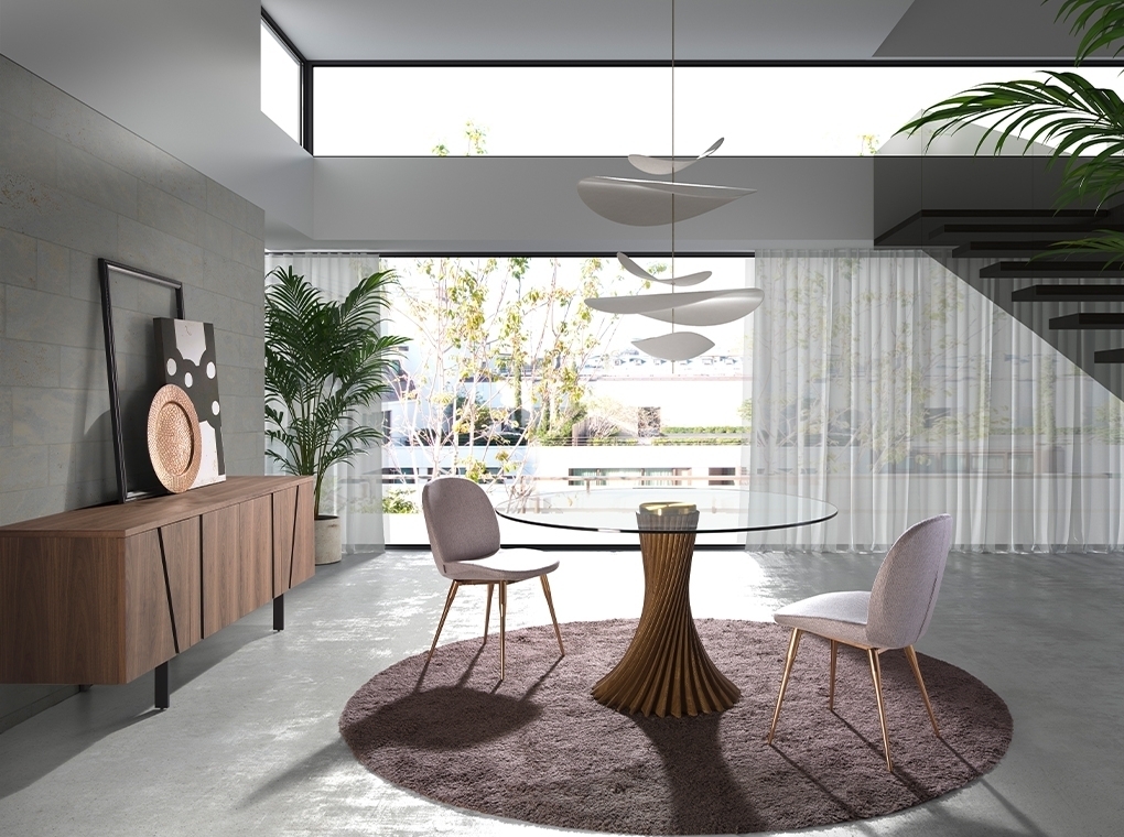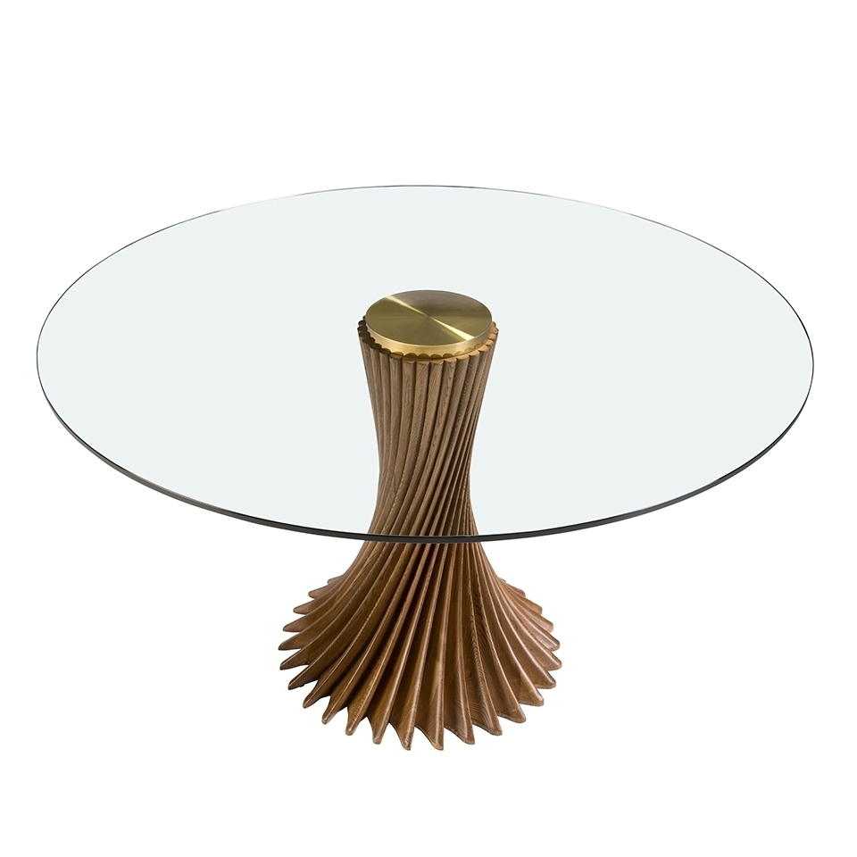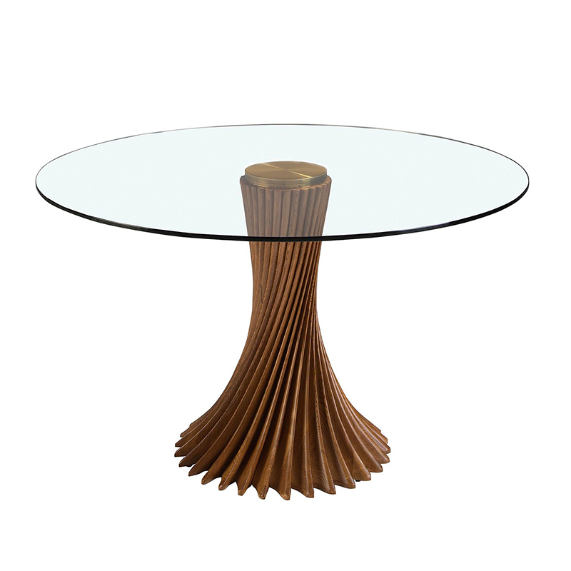 Круглый обеденный стол 1127/RT21042 из закаленного стекла и ореха