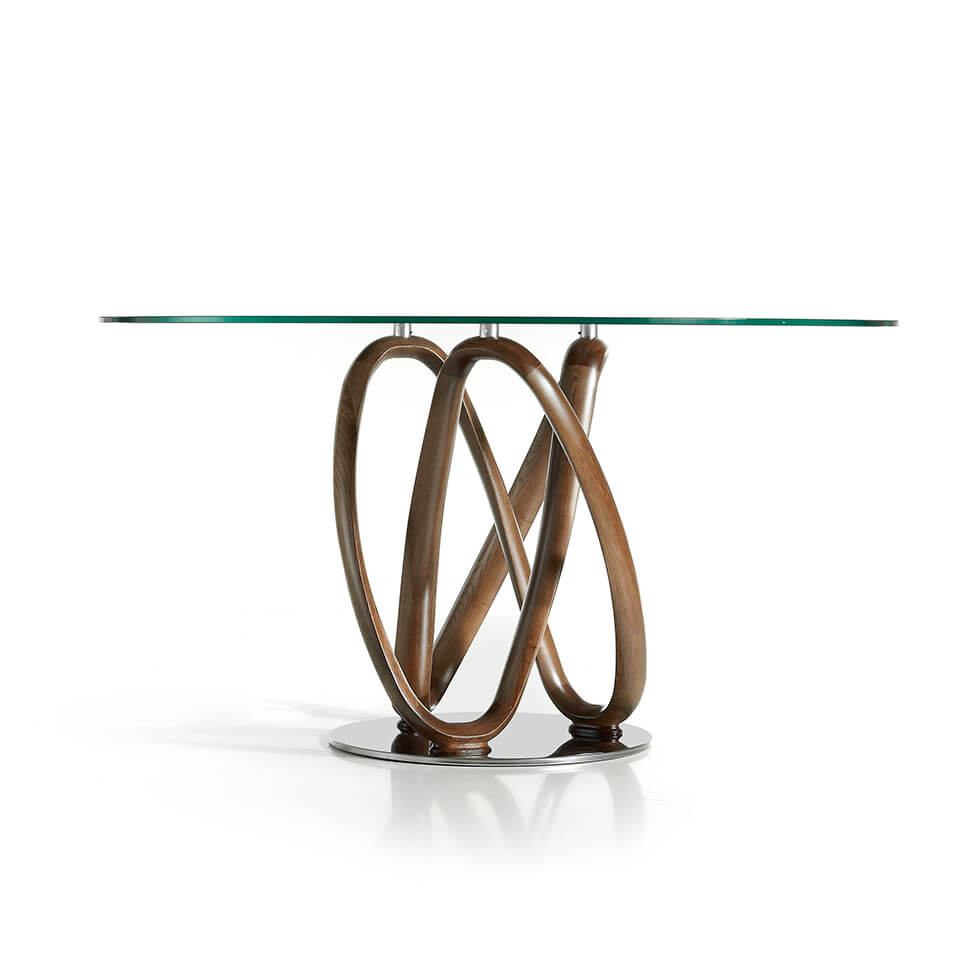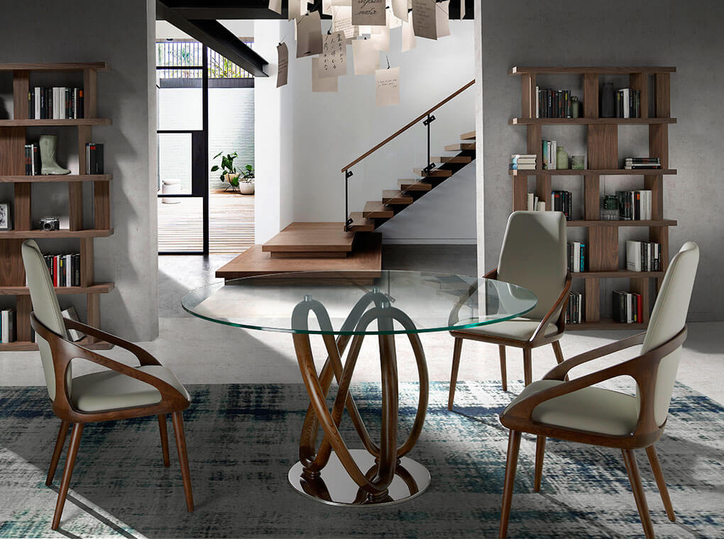 Запросить индивидуальное предложениеКруглый обеденный стол DT801 — уникальное творение дизайнеров фабрики Angel Cerda. Стол удивляет и восхищает одновременно. Слепленная словно из пластилина деревянная стойка бесспорно делает эту модель эксклюзивной. Ножку хочется потрогать, чтобы убедиться в ее твердости и осознать в итоге, что это изделие создавал действительно мастер своего дела. Да, такой стол — настоящая находка для современной гостиной, которой не хватает чего-то особенного. При изготовлении данной данной модели использовалось сразу три материала: сталь, стекло и дерево. Столешница сделана из закаленного ударопрочного стекла и имеет круглую форму. Отсутствие острых углов делает эксплуатацию изделия более безопасным, что важно для семей с маленькими детьми. Поддерживает столешницу стойка, сделанная из цельной гнутой древесины. Ей оставлен натуральный, светло-коричневый цвет. Для придания всей конструкции устойчивости, есть металлическая подложка, на которой закреплена дизайнерская ножка. Она имеет цвет темной хромированной стали и достаточную площадь, чтобы обеспечить нужную устойчивость. Цвета отделки указываются в соответствии с каталогом производителя. Допускается незначительное отклонение в цвете, обусловленное техническими особенностями цветопередачи фотографий.