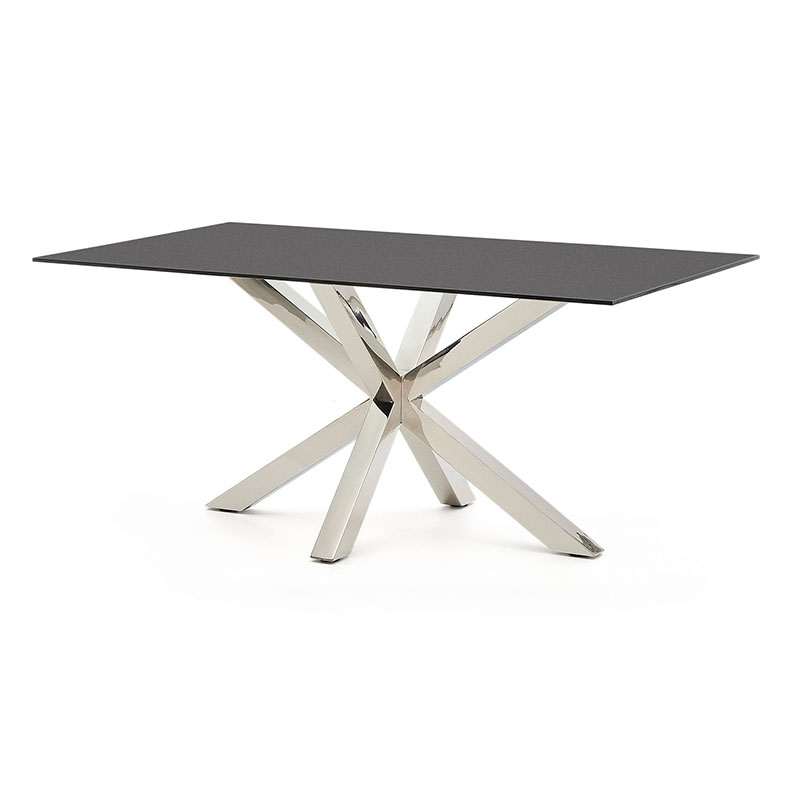 Стол ARYA Argo из матового черного стекла и нержавеющей стали