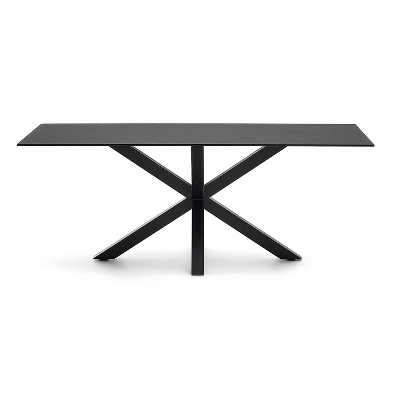 Argo Стол обеденный с черными ножками из стали и столешницей из черного стекла 200x100