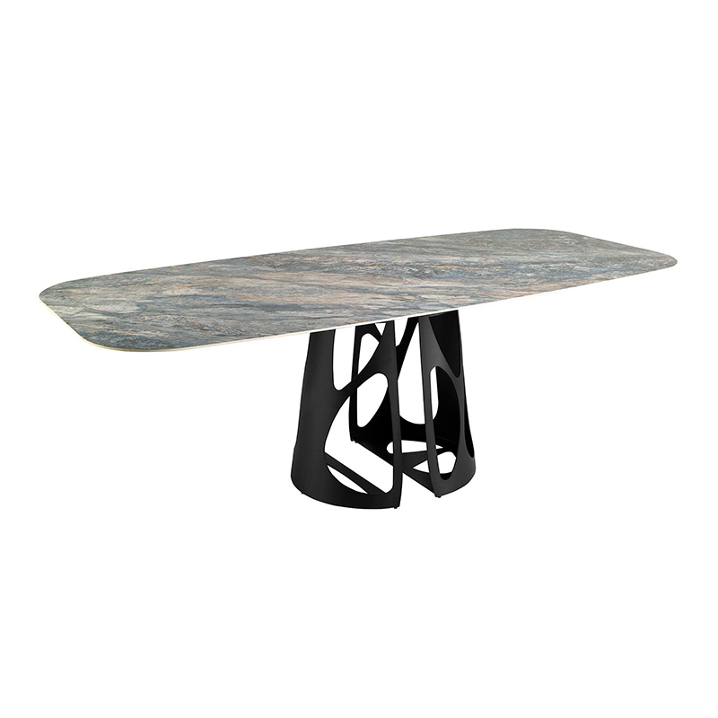 Запросить индивидуальное предложениеСовременный дизайн овальный обеденный стол с фиксированной столешницей из синего фарфорового мрамора с серыми и коричневыми прожилками в глянцевой отделке. Его оригинальные черные ножки из нержавеющей стали, окрашенные в эпоксидную смолу, являются ключевыми элементами его дизайна. Цвета отделки указываются в соответствии с каталогом производителя. Допускается незначительное отклонение в цвете, обусловленное техническими особенностями цветопередачи фотографий.