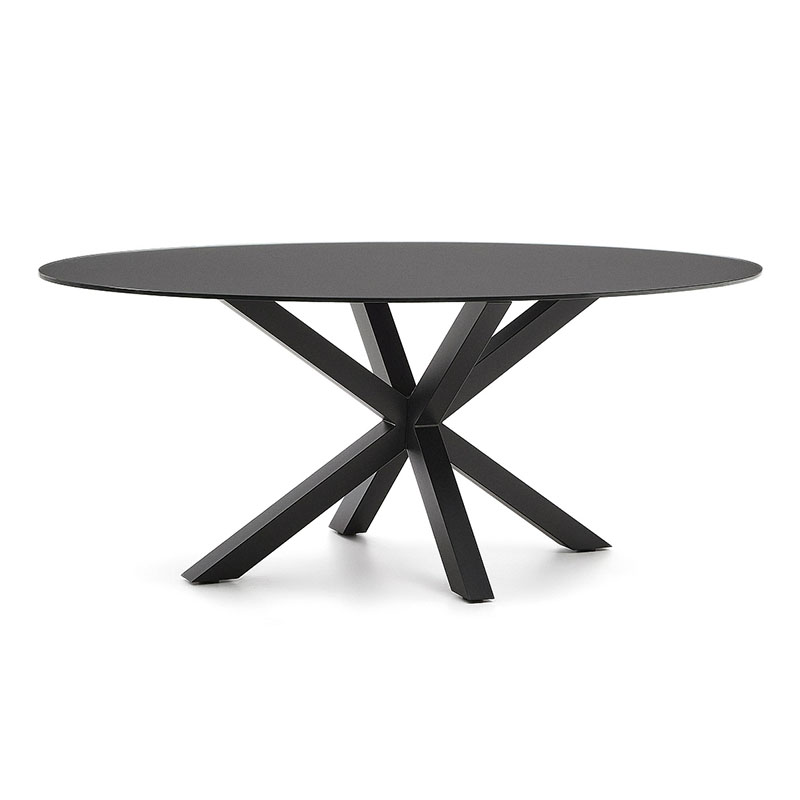 Стол Argo с черным стеклом и черными стальными ножками Ø 200 x 100 см