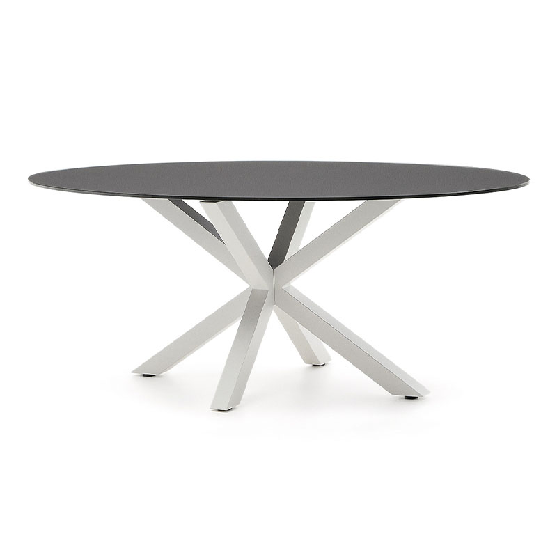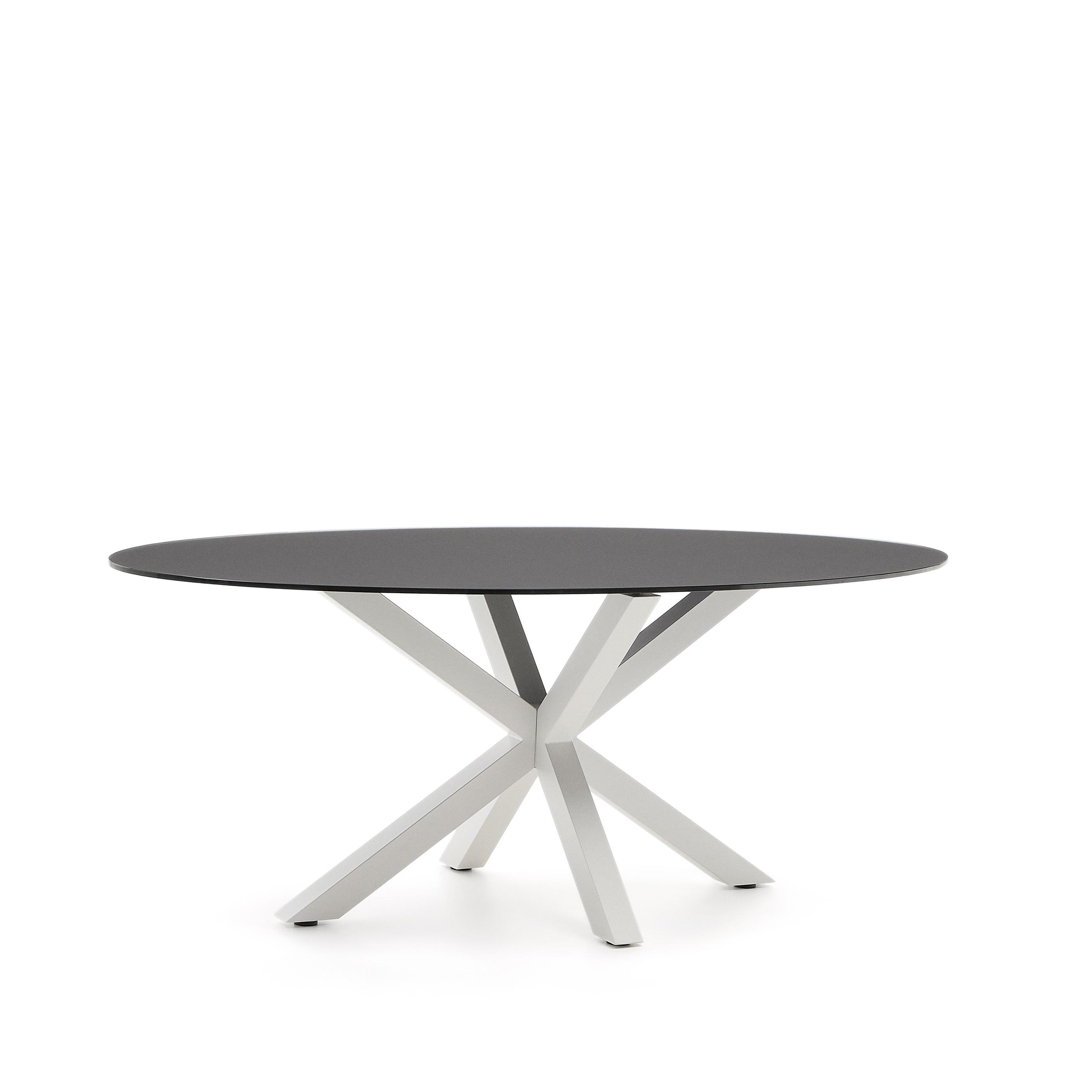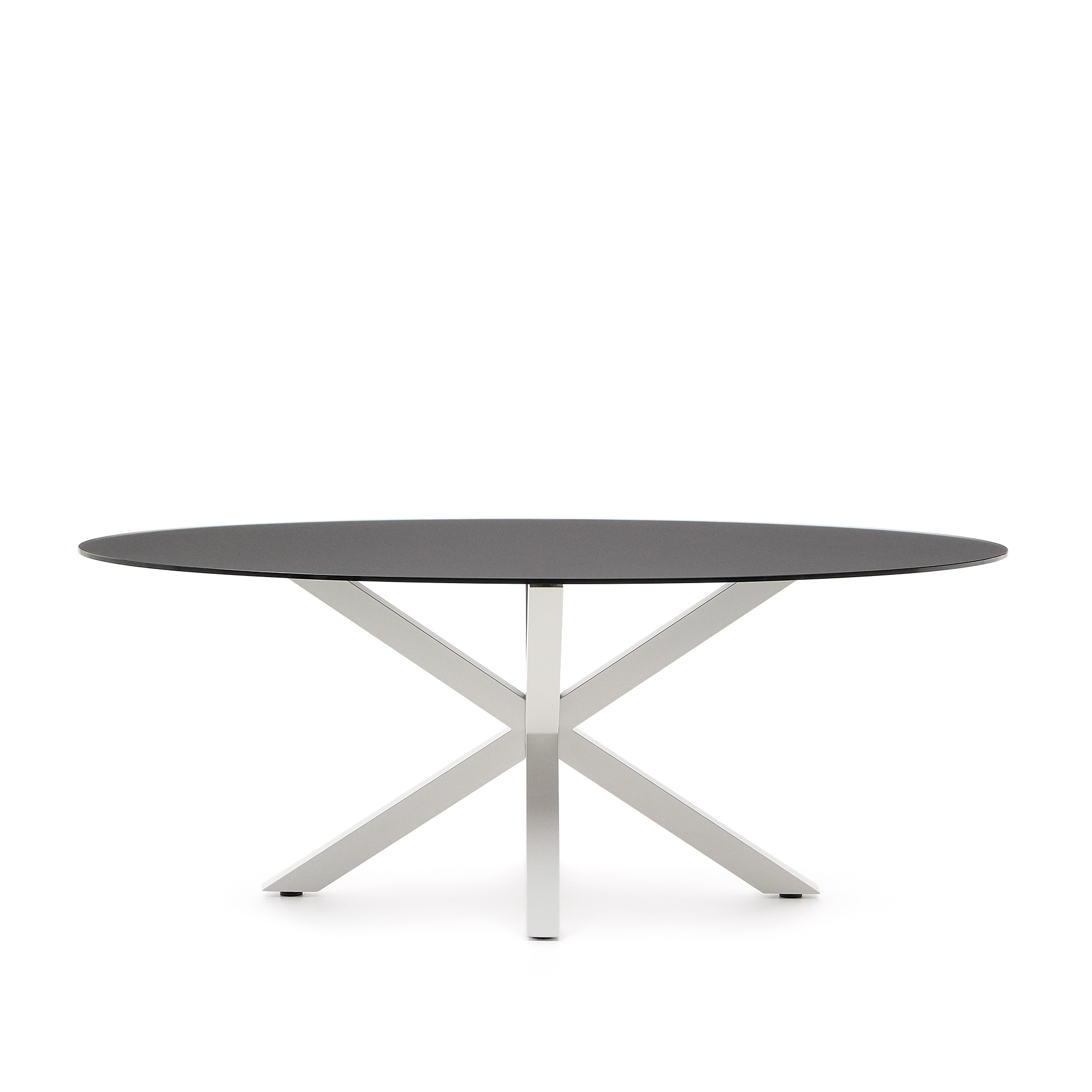 Овальный стол ARYA Argo из матового черного стекла со стальными ножками 200x100