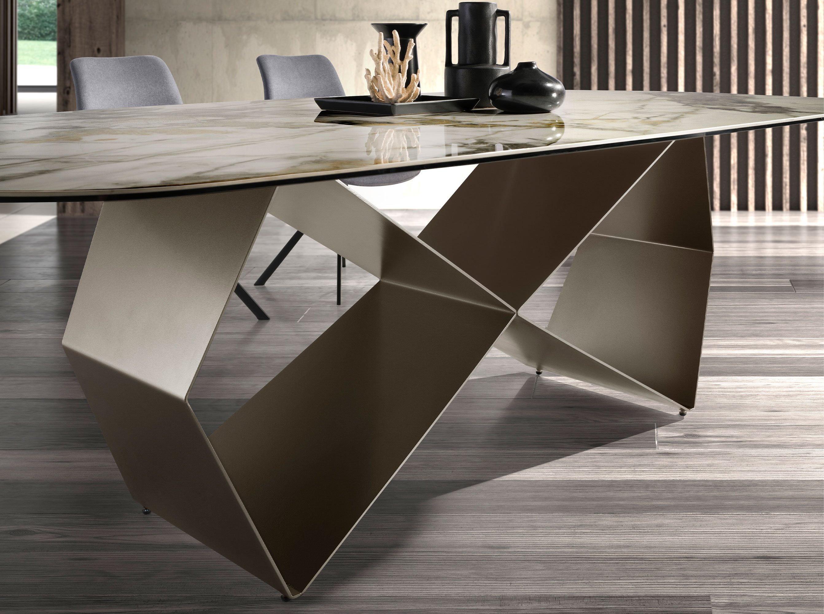 Обеденный стол 1140/MC23182DT из керамики и стали цвета шампанского