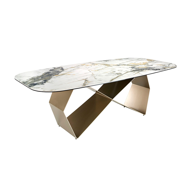 Обеденный стол 1140/MC23182DT из керамики и стали цвета шампанского