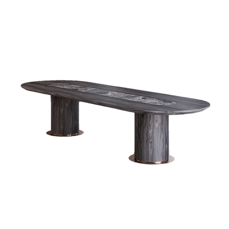 - Столешница овальная. Шпон американского ореха, тонированный, лак матовый.