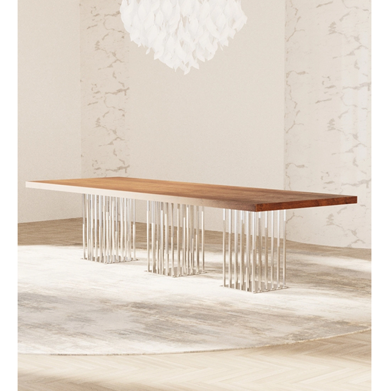 Просто потрясающий, блистательный стол! Строгая форма столешницы и сверкающие, исчезающие опоры, напоминают нам восторженные впечатления от летнего дождя в солнечную погоду!