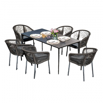 "Малага" обеденная группа на 6 персон со стульями "Марсель", каркас темно-серый, роуп темно-серый