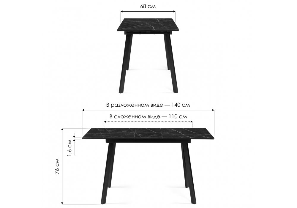 Деревянный стол Агни 110(140)х68х76 сосна пасадена / черный матовый