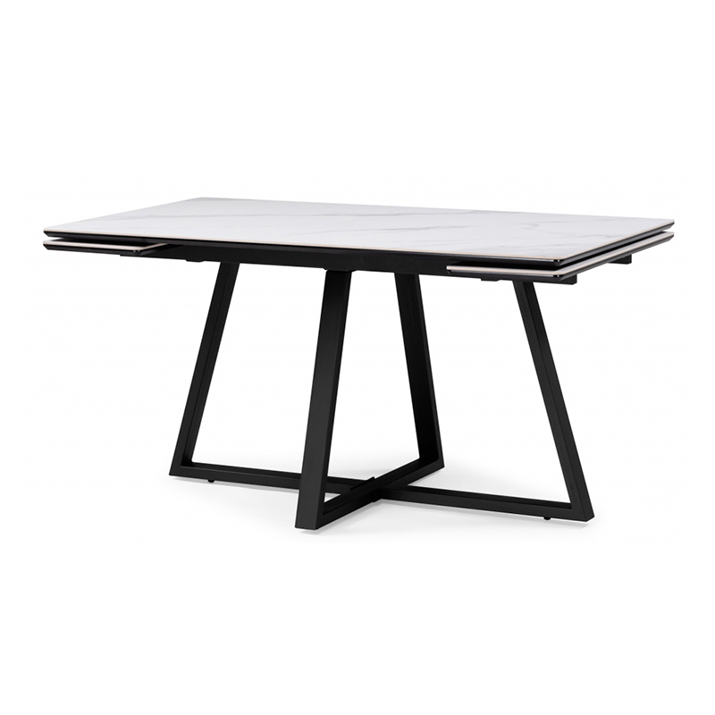 Керамический стол Памелла 140(200)х80х75 белый мрамор snow white / черный