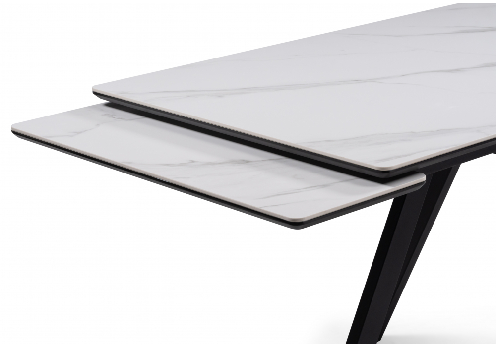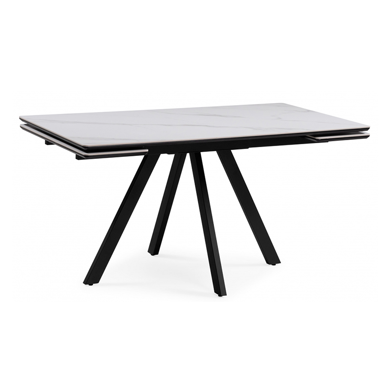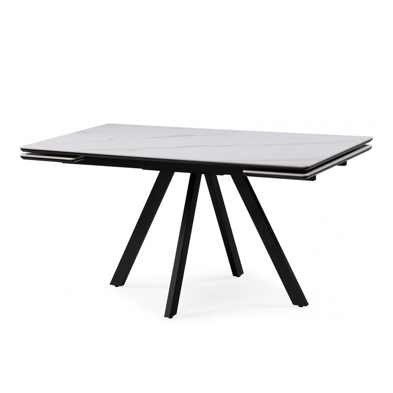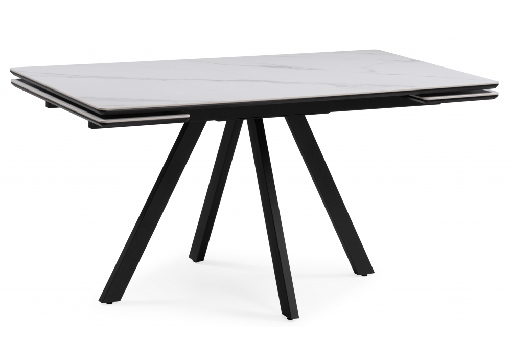 Керамический стол Вилли 140(200)х80 белый мрамор snow white / черный