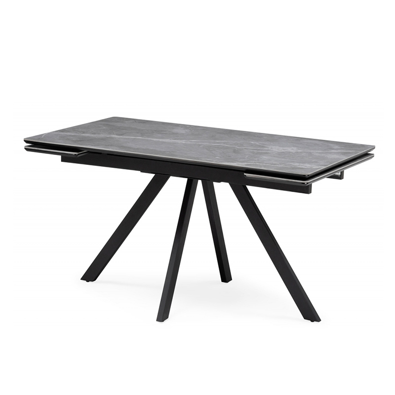 Керамический стол Вилли 140(200)х80 серый мрамор larka grey / черный