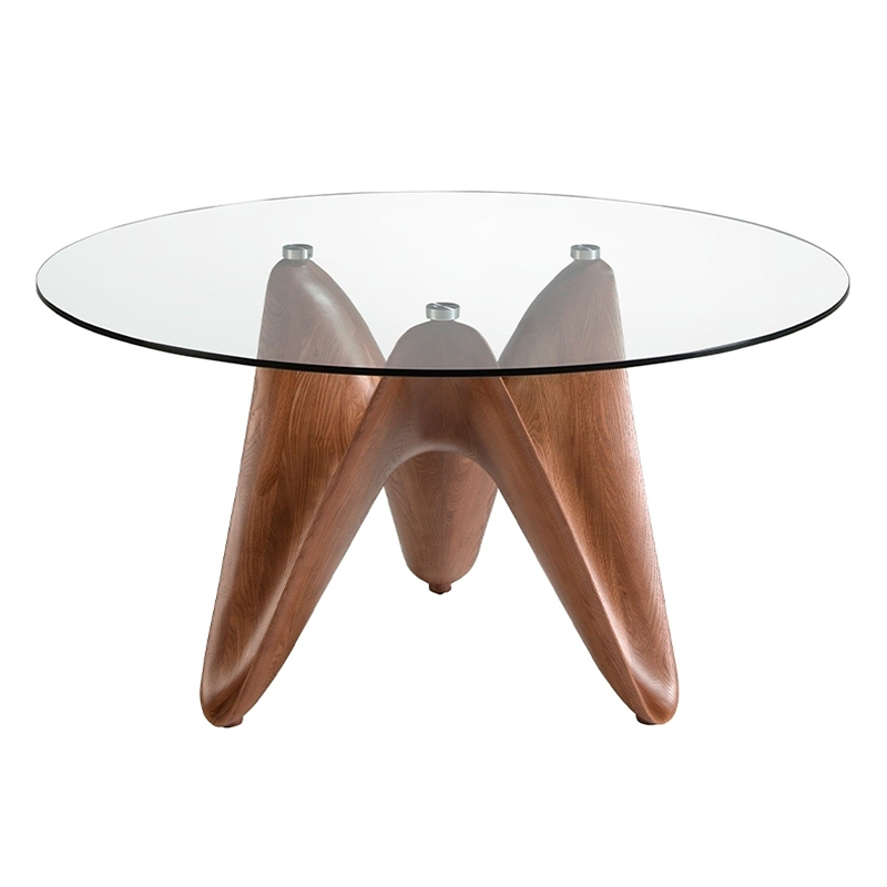 Круглый обеденный стол из закаленного стекла и ореха 1126-Ø150