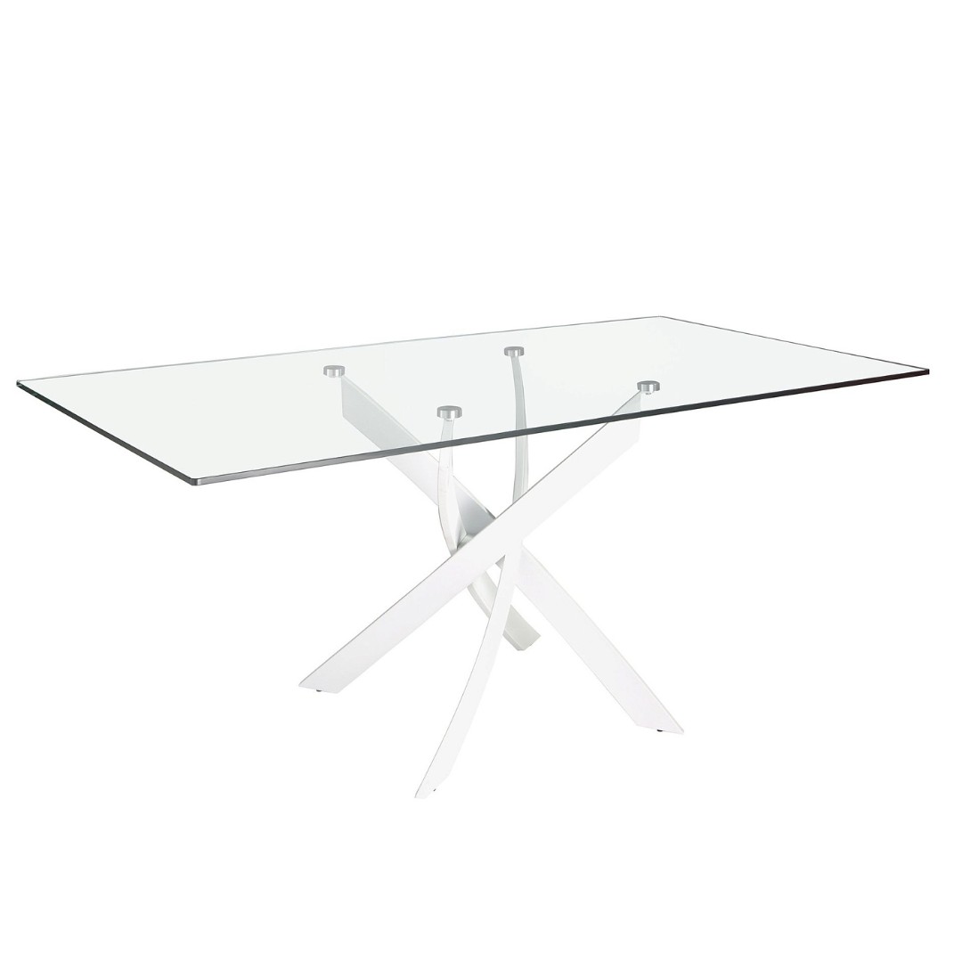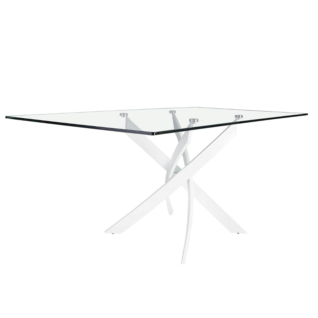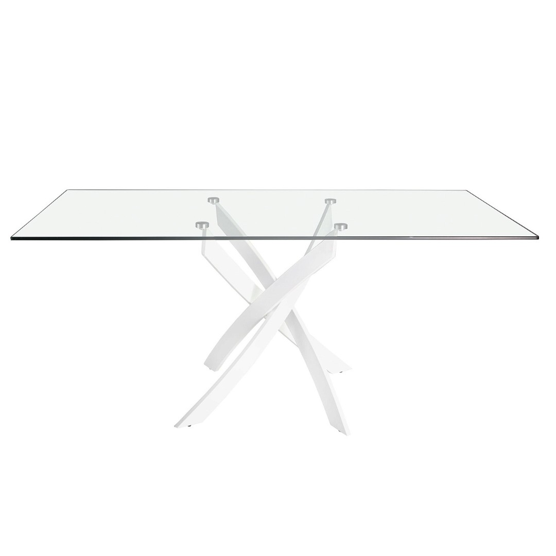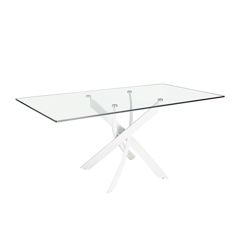 Прямоугольный обеденный стол из закаленного стекла и белой стали 1138-180x95
