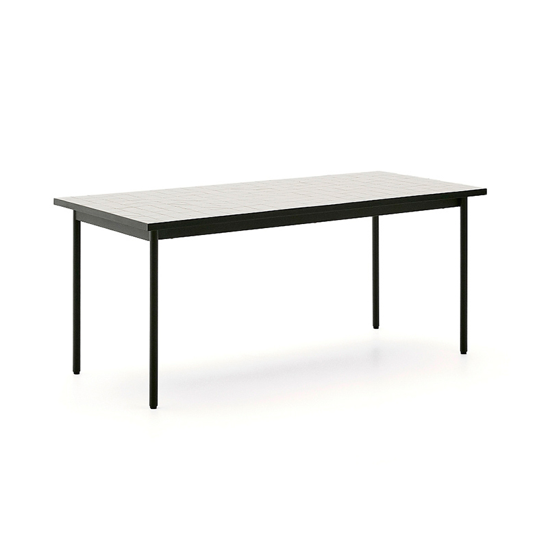 Уличный стол Maurina из зеленой оцинкованной стали с плиткой цвета экрю 182 x 91 см
