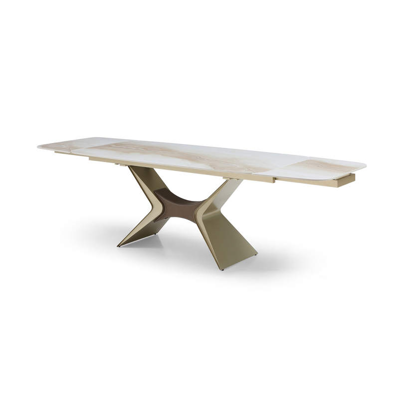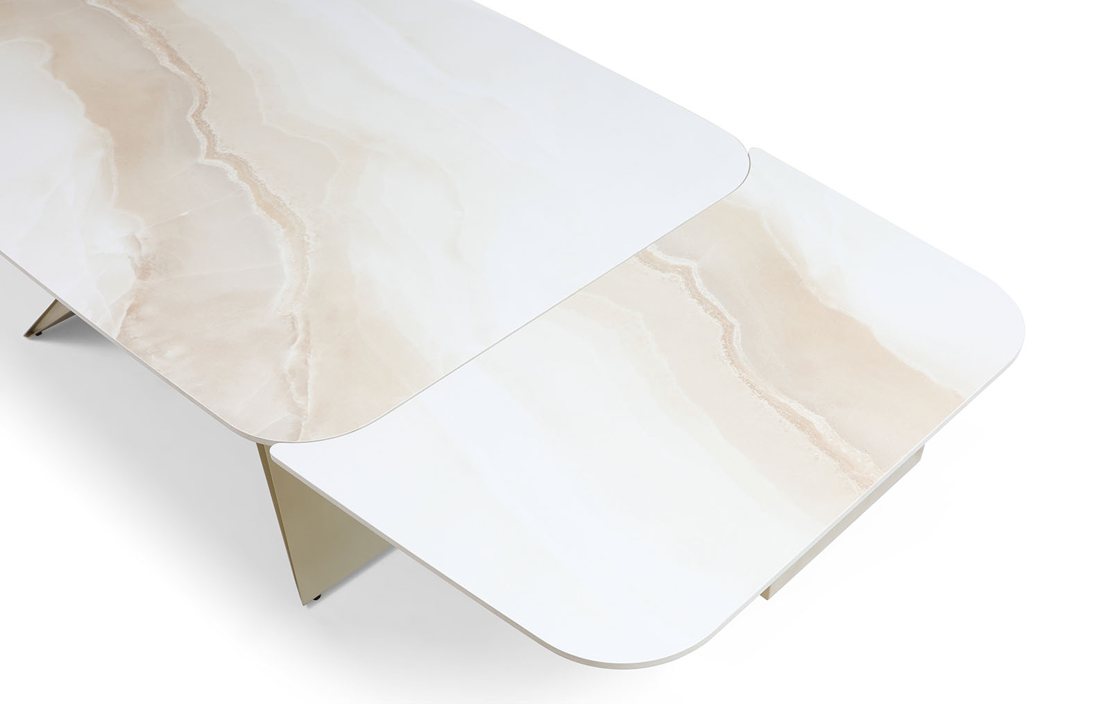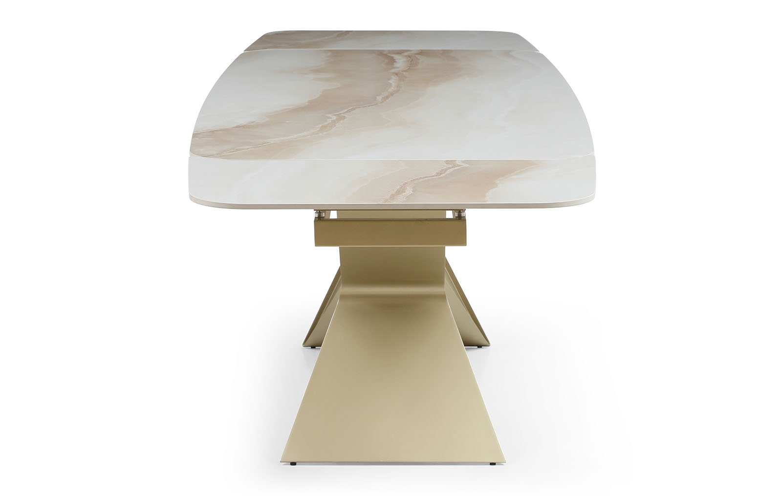 Раскладной обеденный стол Richard (Ричард) со столешницей из бежевой керамики - элегантный и стильный предмет интерьера, который станет центральным элементом обеденной зоны и ее украшением. Благодаря своей цветовой гамме, он усиливает ощущение света и пространства в помещении.