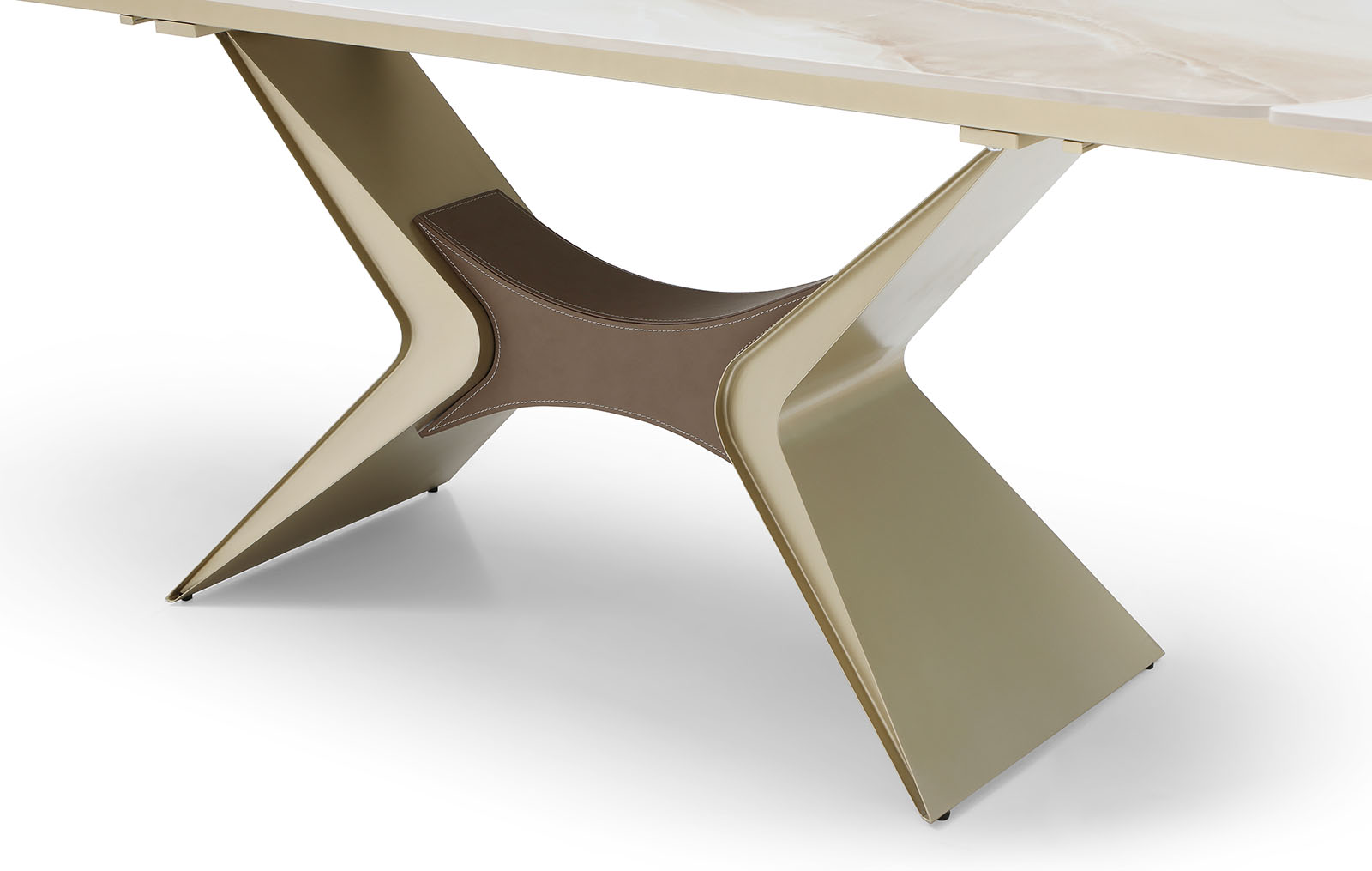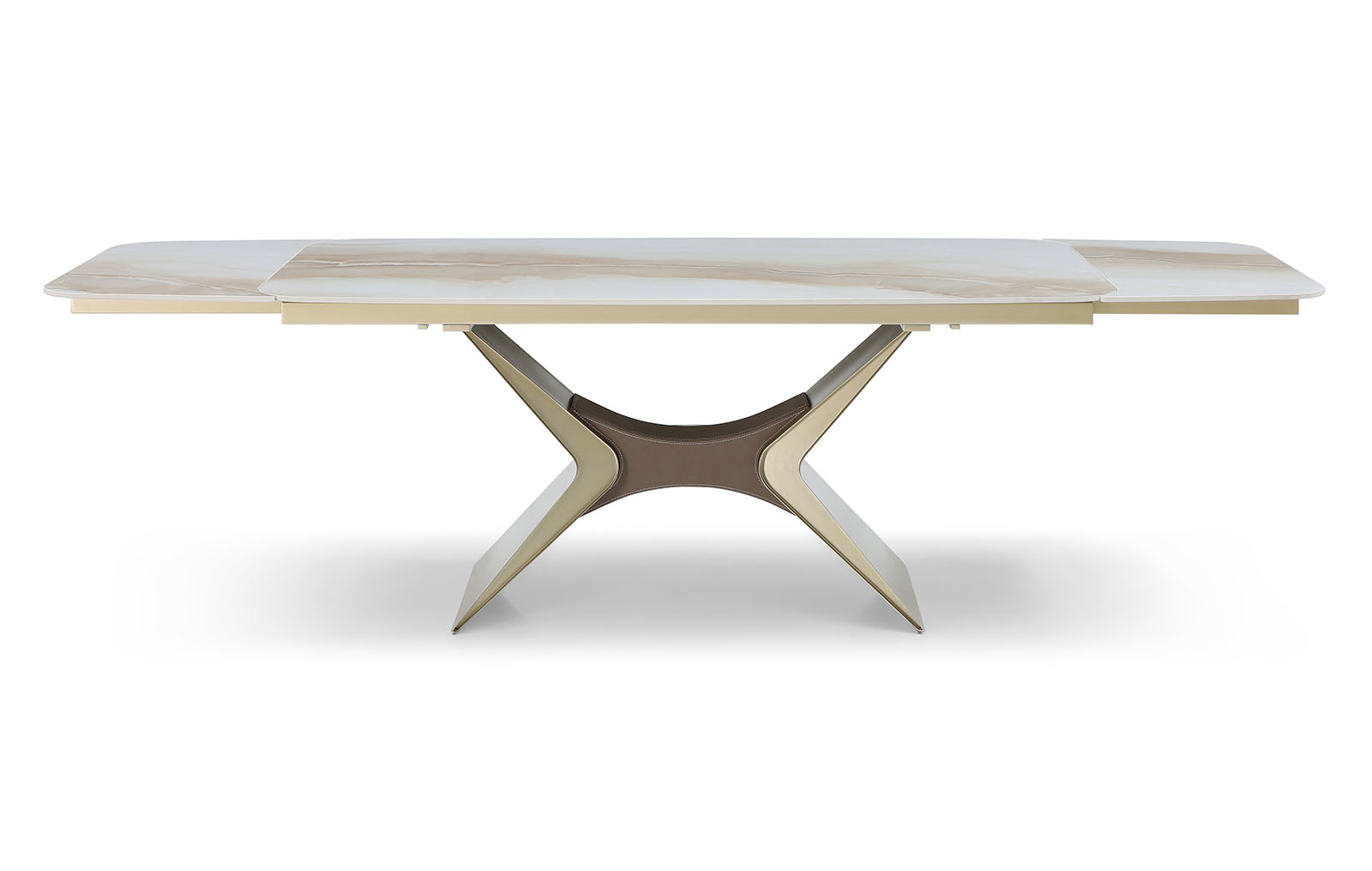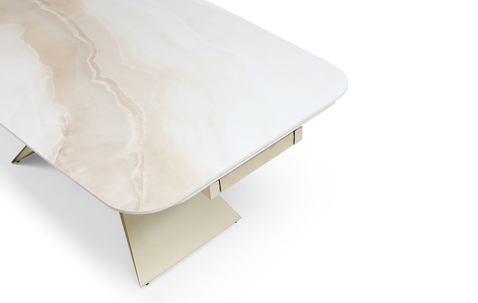 Раскладной обеденный стол Richard (Ричард) со столешницей из бежевой керамики - элегантный и стильный предмет интерьера, который станет центральным элементом обеденной зоны и ее украшением. Благодаря своей цветовой гамме, он усиливает ощущение света и пространства в помещении.