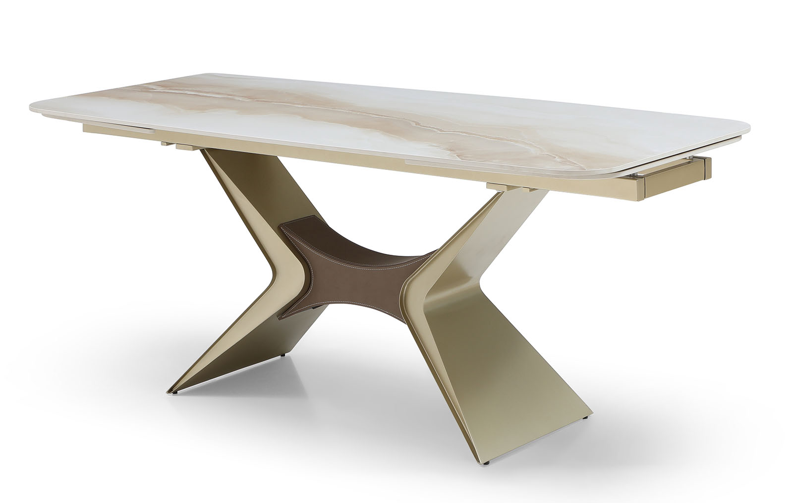 Стол раскладной Richard 160-240, бежевая керамика/шампань