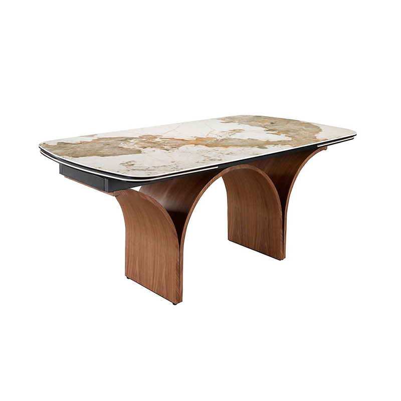 Раздвижной стол 1156 из керамики с эффектом мрамора и стали с отделкой под орех