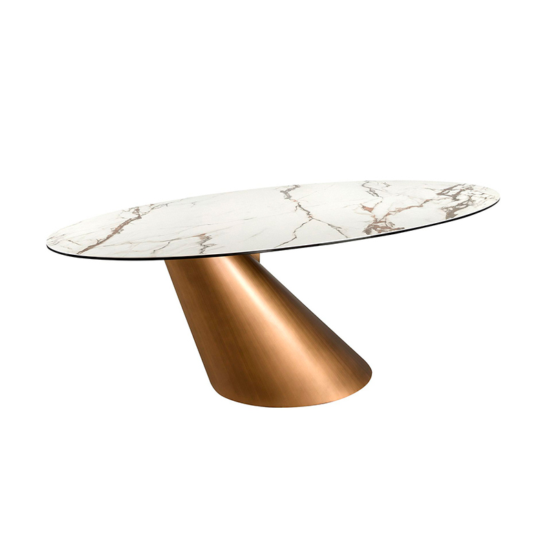 Овальный обеденный стол 1160 из керамики в мраморной отделке и стали бронзового цвета