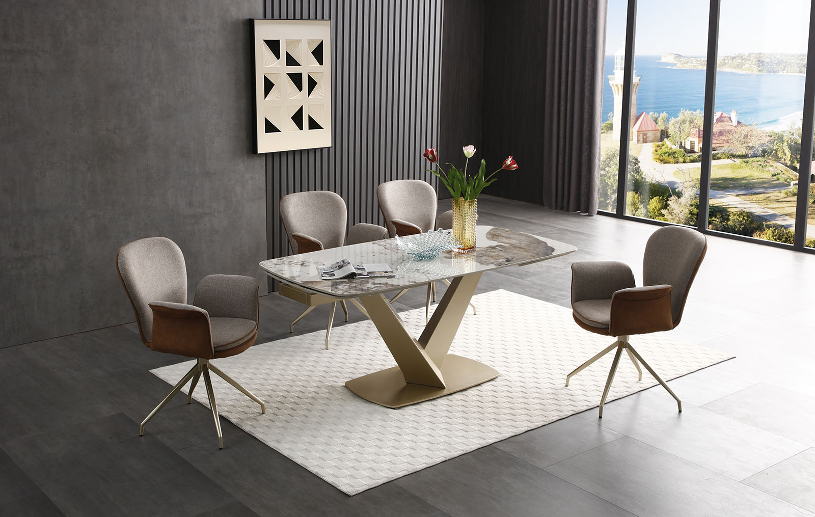 Сочетание керамики и золота гармонично вписывается как в изысканные столовые комнаты в стиле ар-деко, так и в современные фьюжн-интерьеры.