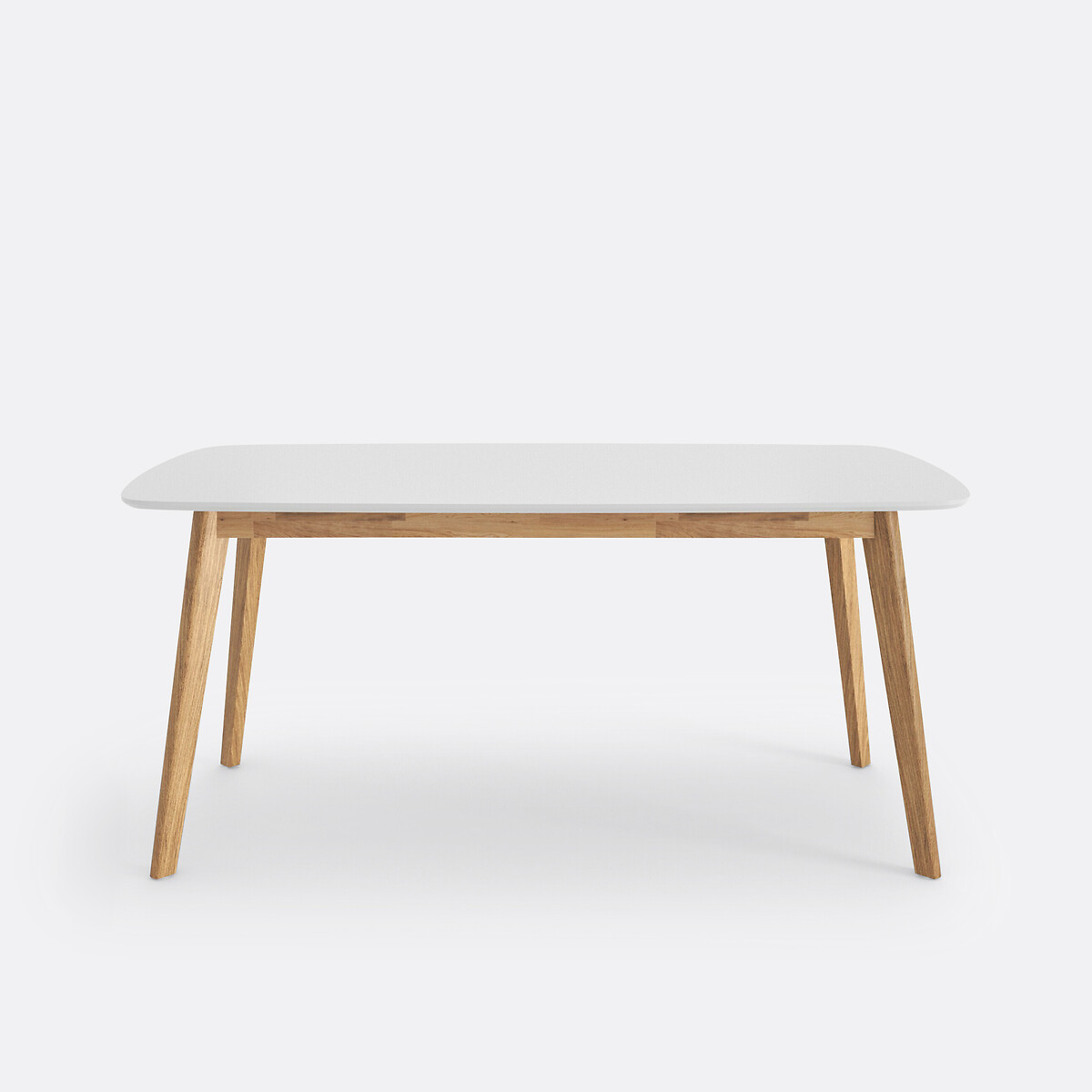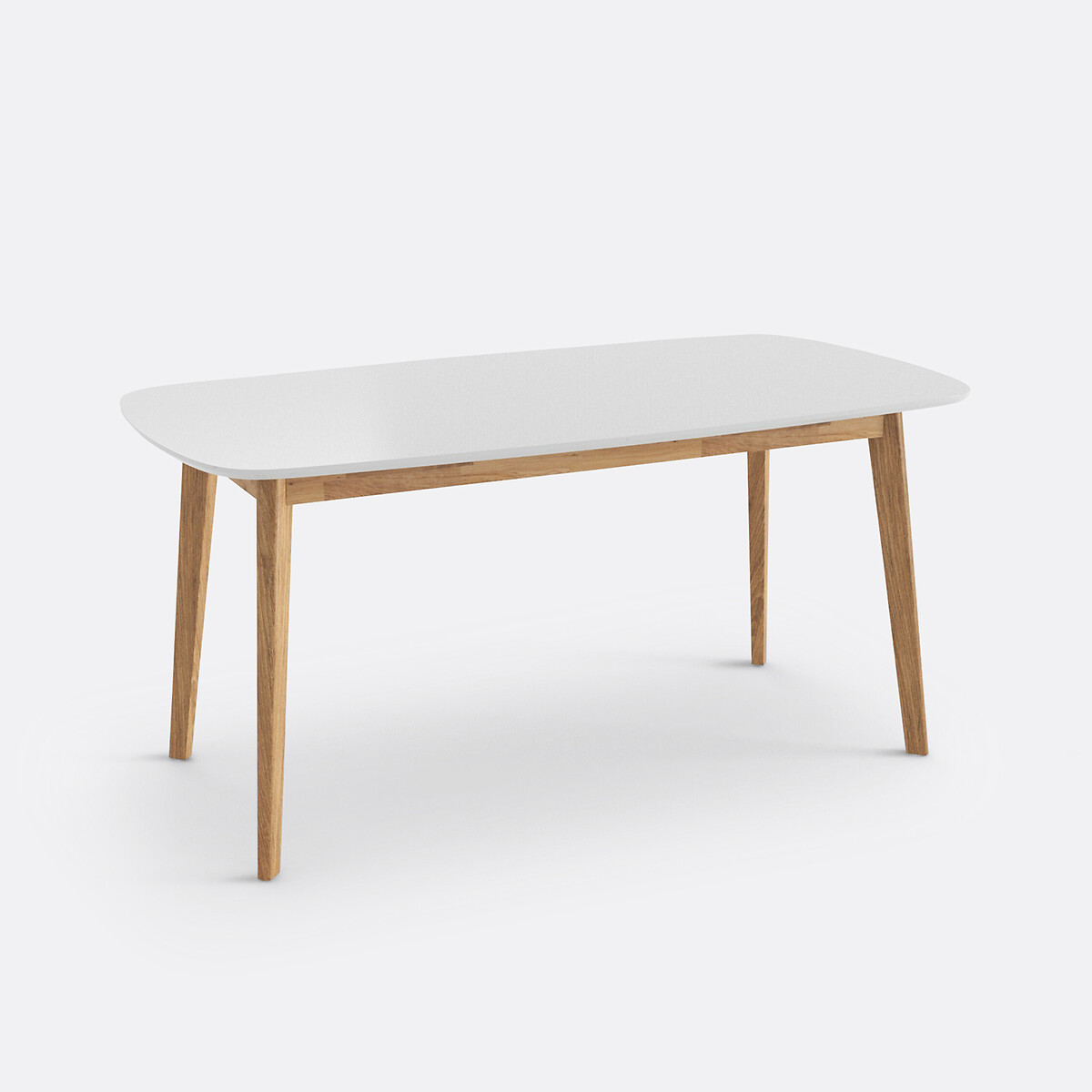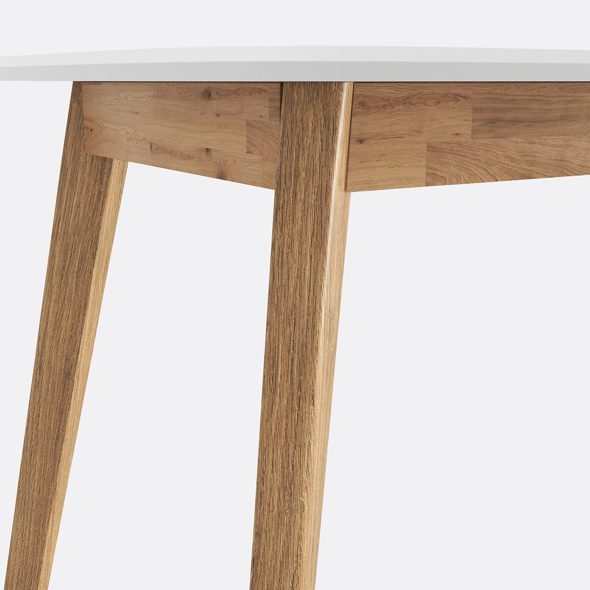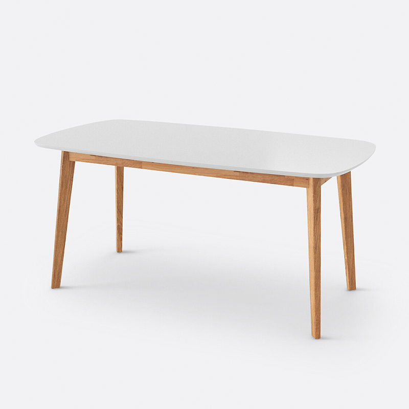 Его лаконичный дизайн вдохновлён скандинавским стилем: белоснежная столешница, скошенные края, массив дуба и чистота линий.