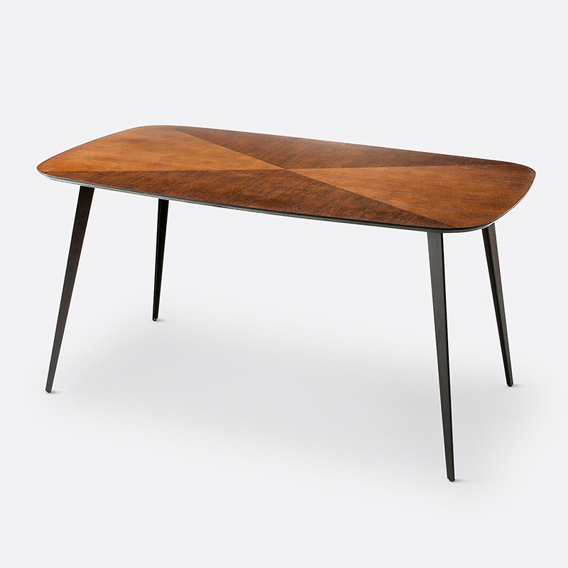 Обеденный стол Watford от La Redoute Intérieurs словно перенесён из середины прошлого века. Его характерная квадратная форма, мозаичная столешница с текстурой ореха и утончённые V-образные ножки создают узнаваемый силуэт в духе 50-х годов. Это предмет с настроением -- он задаёт тон всей столовой, добавляя ностальгический акцент с современным звучанием.