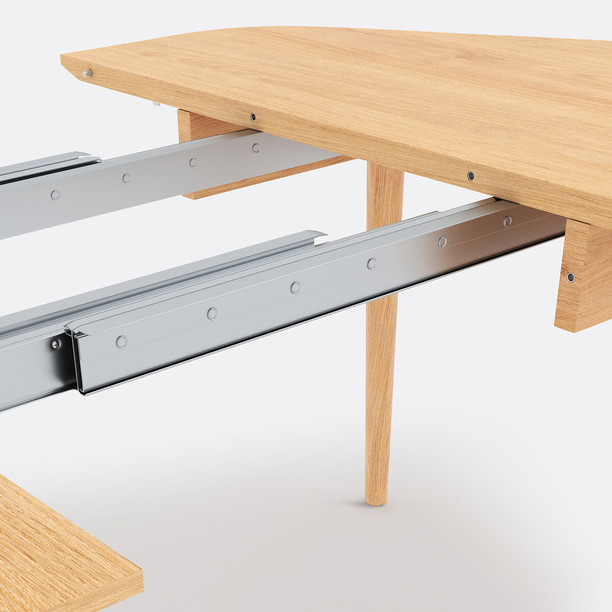 • Столешница и вставные доски из МДФ, покрытого дубовым шпоном, с покрытием нитролаком.