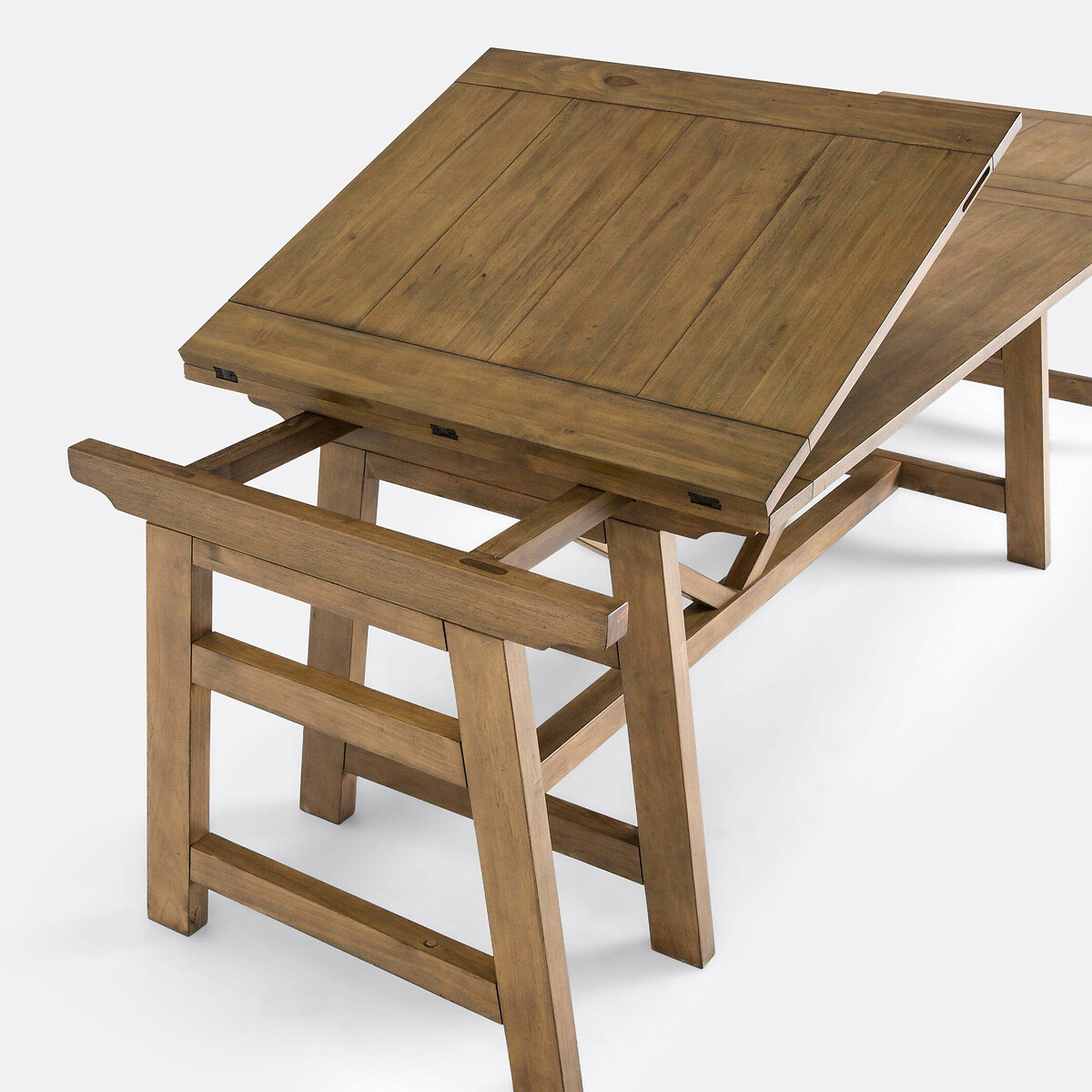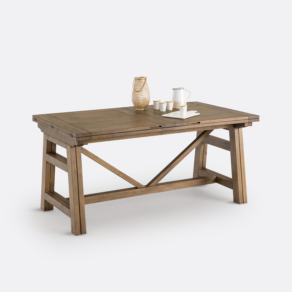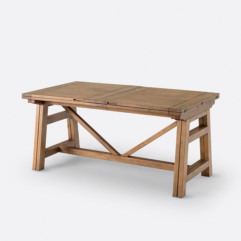 • 2 вставные доски в виде книжки: вытащить ножки из каждой стороны, затем открыть удлинения в виде книжки. Очень практичный: Экономия места гарантирована