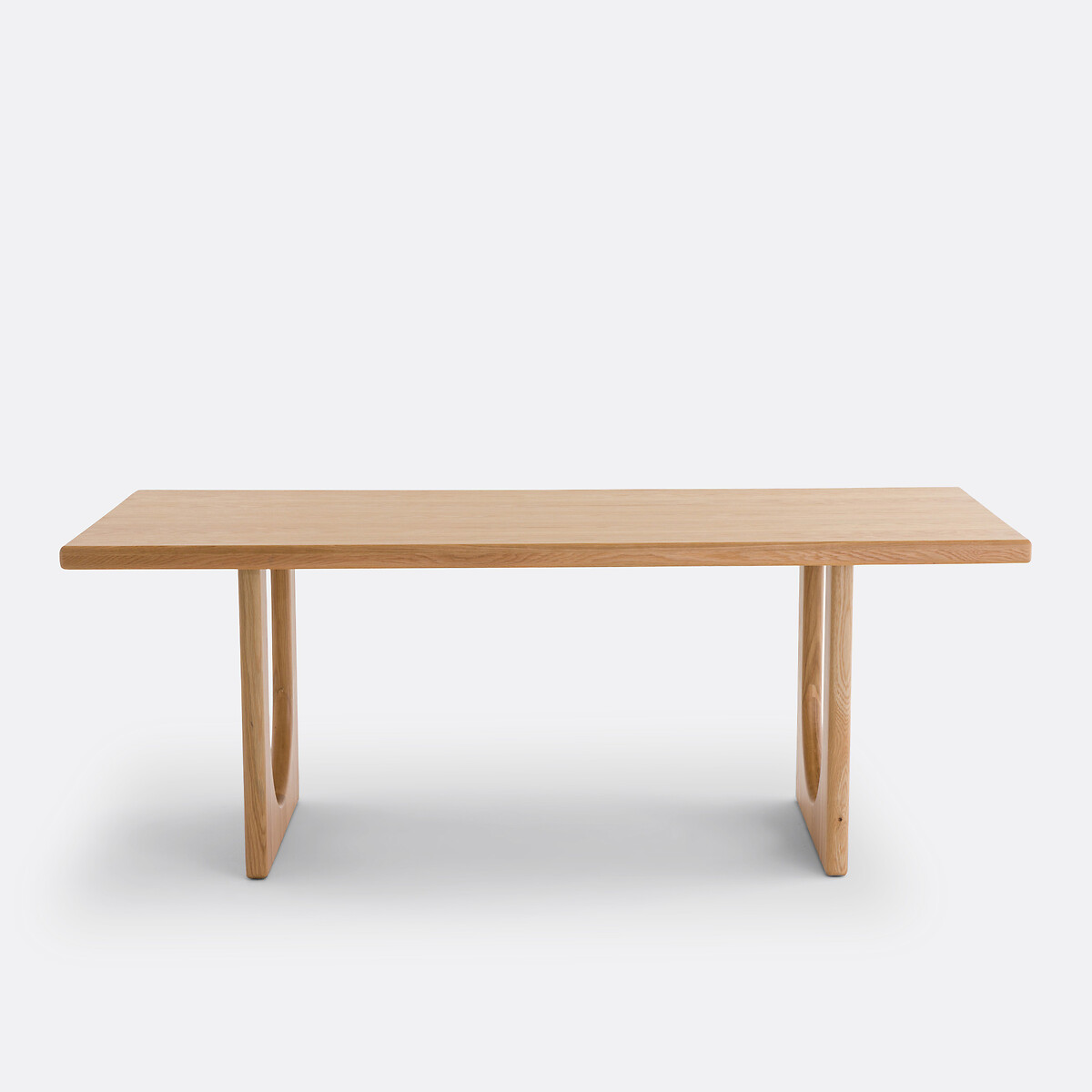 "Создавая консоль Douve, я хотел изобразить традиционный аббатский стол в новой интерпретации. Она отличается современным стилем и скульптурным дизайном. Массив дуба с сертификатом FSC®, толстая столешница с закругленными краями и ножки в виде перевернутой арки: Вся красота деревообработки."