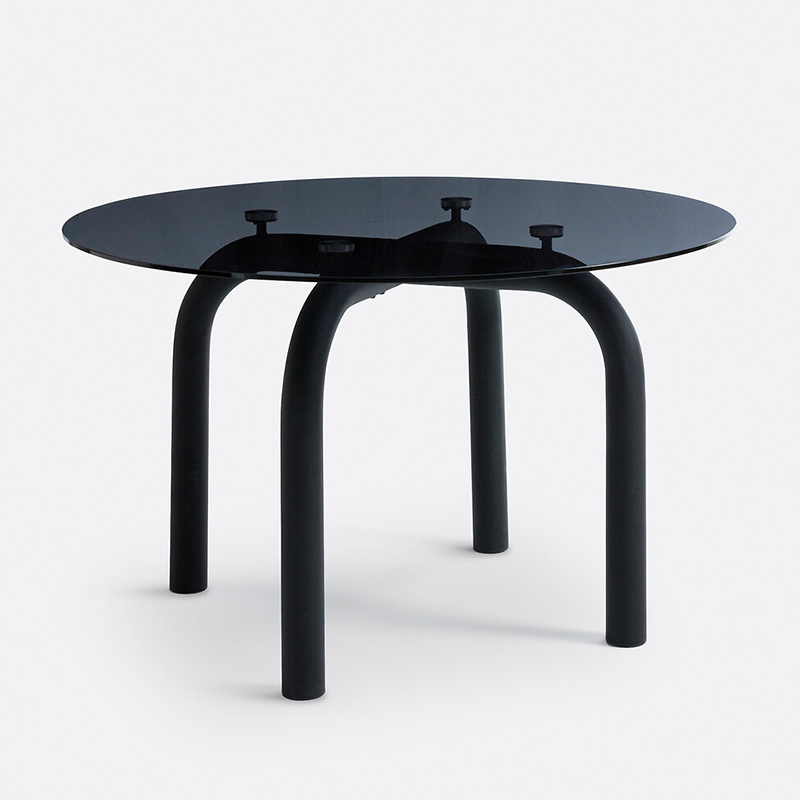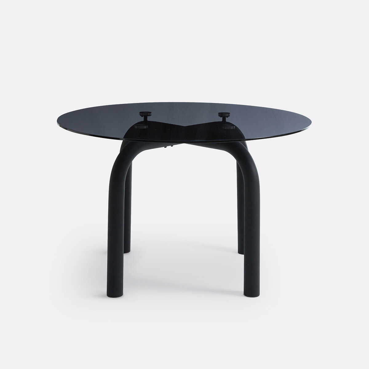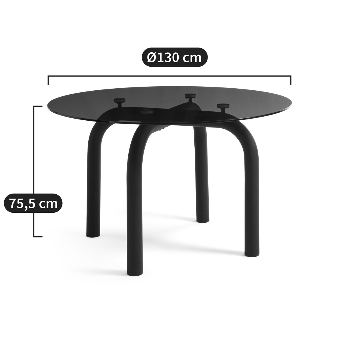 Стол круглый из тонированного стекла и стали на четыре персоны Polly 4 персоны черный