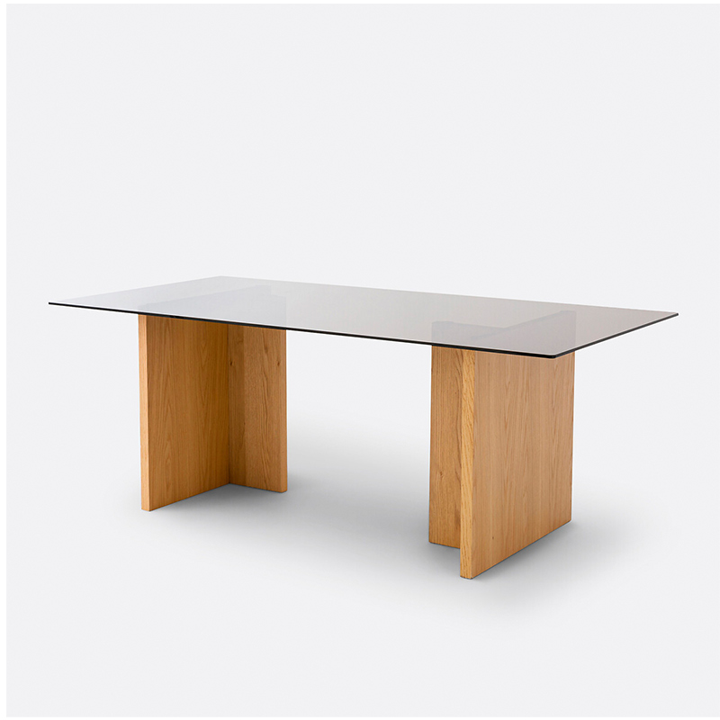 Современный и выразительный, стол Archita от La Redoute Intérieurs создан для тех, кто ценит архитектурный подход в интерьере. Его массивные ножки с отделкой шпоном дуба FSC® напоминают скульптурные элементы, а полупрозрачная стеклянная столешница придаёт лёгкость и графичность -- как будто соединяя функциональность с искусством.