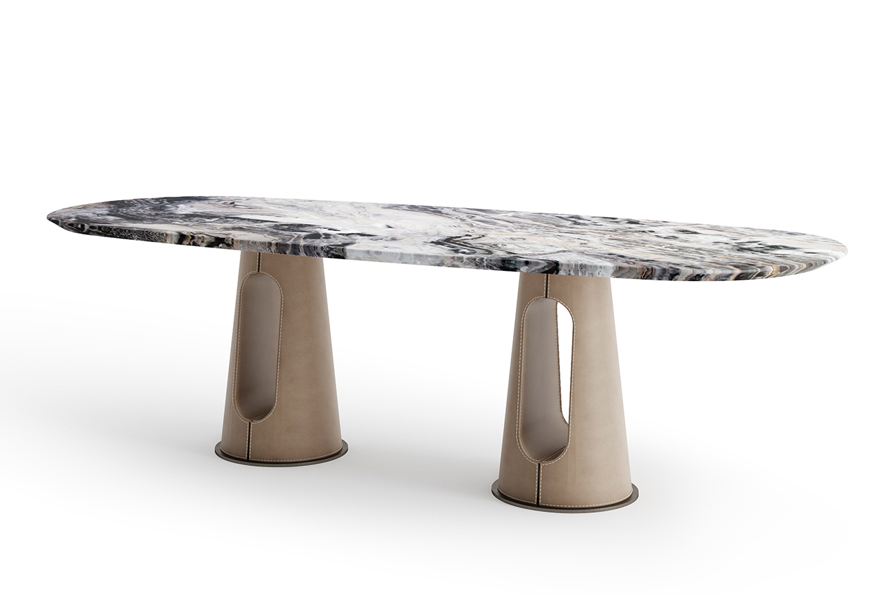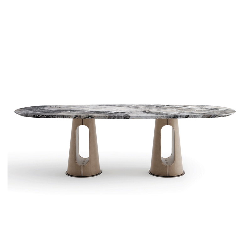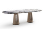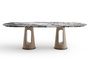 Запросить индивидуальное предложениеОбеденный стол из природного мрамора – ультрамодная мебель, воплотившая в себе лаконичную практичность и элегантную эстетику. Эта мебель станет украшением современного интерьера благодаря трендовому дизайну и нейтральной цветовой гамме. Особенного шика придает конструкции мраморная столешница Venetian Brown с уникальным рисунком, которая делает овальный обеденный стол статусным предметом интерьера. В качестве основания дизайнеры использовали не привычные ножки, а опоры оригинальной формы с отделкой из экокожи. Такое дизайнерское решение обеспечило конструкции ярко выраженную индивидуальность. Купить мраморный обеденный стол можно в комплекте с креслами и стульями из каталога Garda Decor. Толщина столешницы 36мм. Для защиты столешницы от царапин необходимо пользоваться салфетками или мягкими подставками. Сочетается со стульями 160KD-80200, выполненными в бежевой экокоже.