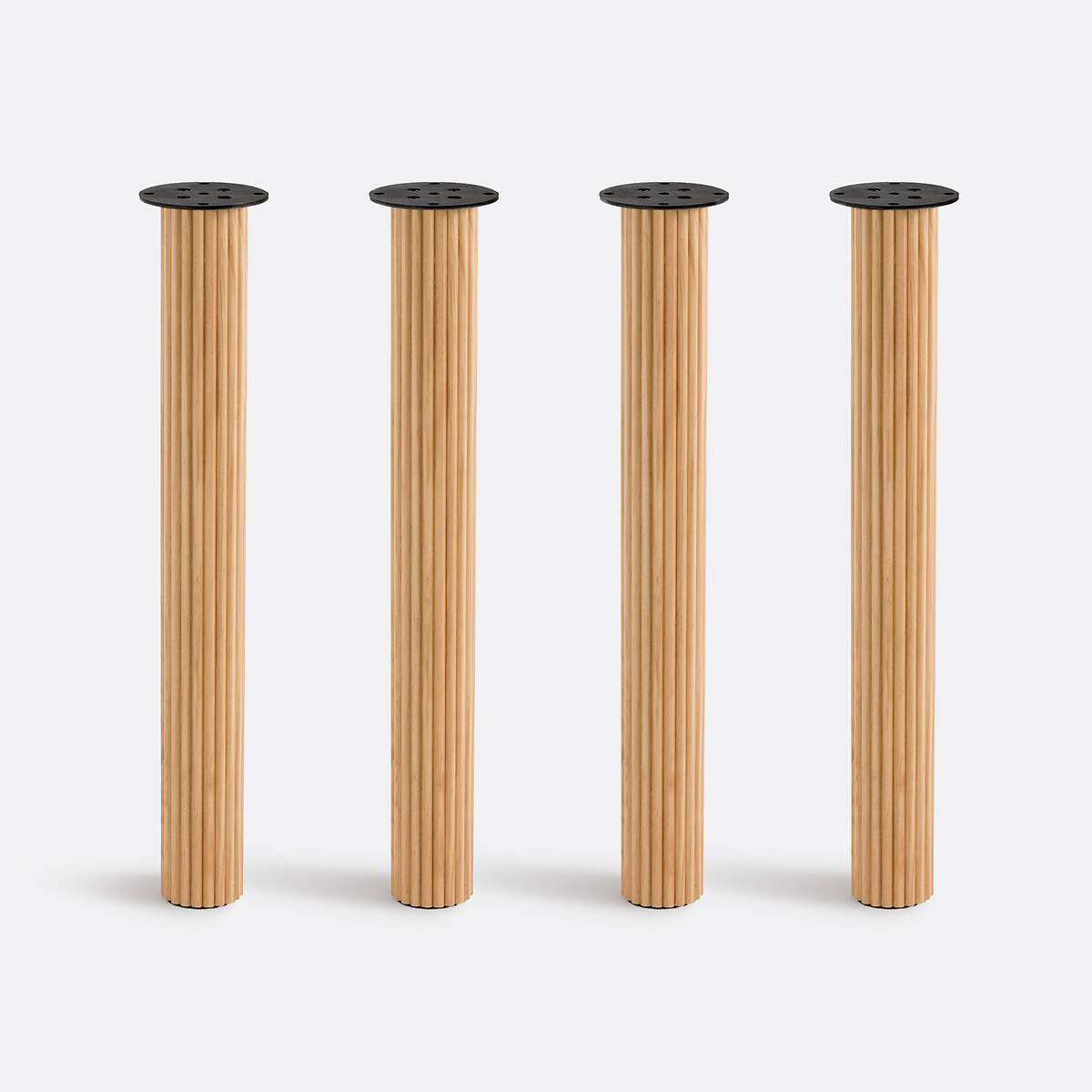• Четыре ножки для стола из массива сосны, соединенного встык, и реек из массива дуба или из массива орехового дерева с покрытием ПУ-лаком