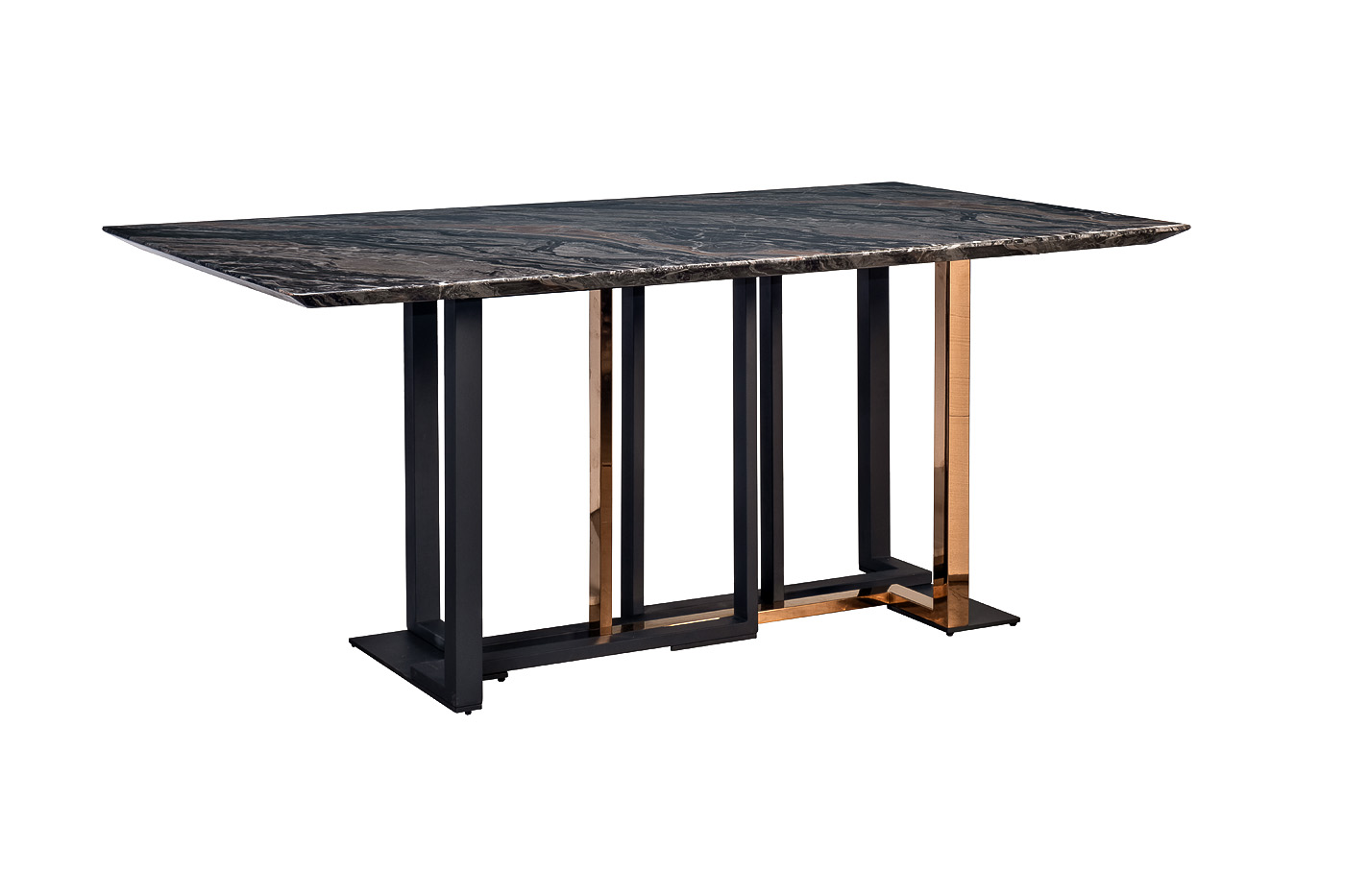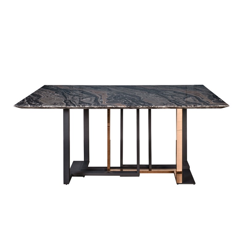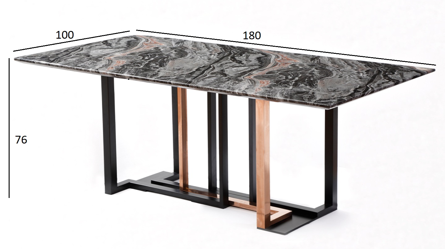 Запросить индивидуальное предложениеОбеденный стол Марсель - прекрасное приобретение в стиле ар-деко для вашей столовой или гостиной. Сервированный хрусталем и фарфором, отражающий блеск свечей или красоту живых цветов он является воплощением Art de vivre - искусства жить, как говорят французы. Роскошный мраморный рисунок полированной столешницы в сочетании со стальными ножками оригинальной формы в черном и золотом цвете располагают как к изысканной трапезе, так и к утонченной беседе. Столешница - МДФ с полимерным покрытием под мрамор. Толщина столешницы - 36мм.