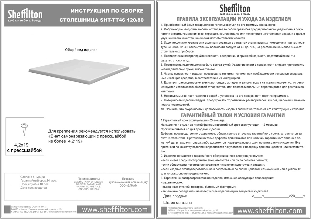 Возникшие загрязнения протрите влажной тканью и вытрите чистой сухой тканью, при необходимости можно использовать слабый мыльный раствор. Для хранения и содержания стола не требуются особые условия.