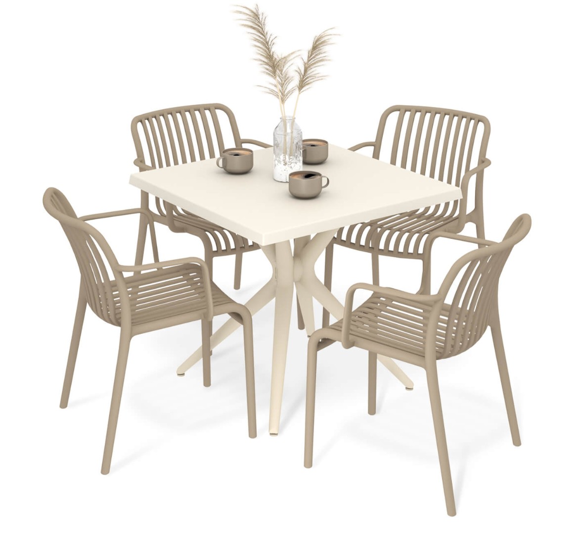Благодаря повышенным АТМОСФЕРОСТОЙКИМ СВОЙСТВАМ, обеденная группа хорошо переносит воздействие различных погодных условий. Не деформируется и имеет более устойчивое сопротивление к изменению цвета и прочностных характеристик на открытом воздухе при температуре от -15 С до +40 С. При этом, важно отметить, что насыщенность цвета во многом будет определяться интенсивностью солнечного света и продолжительностью нахождения под ним.