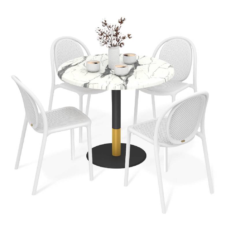 Обеденная группа SHT-DS307 будет гармонично и со вкусом смотреться не только в помещении, но и на улице. Благодаря своим уникальным свойствам обеденная группа станет идеальным решением для ресторанных помещений, кафе и санаториев, где есть открытые летние площадки.
