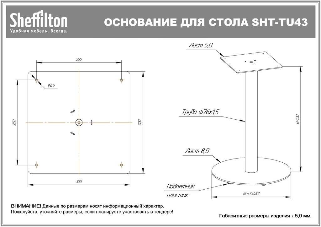 Надежная металлическая опора стола окрашена порошковой краской, устойчивой к механическому воздействию.