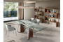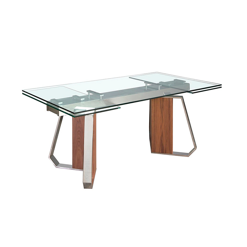 Раздвижной обеденный стол 1159 из стекла, ореха и хромированной стали