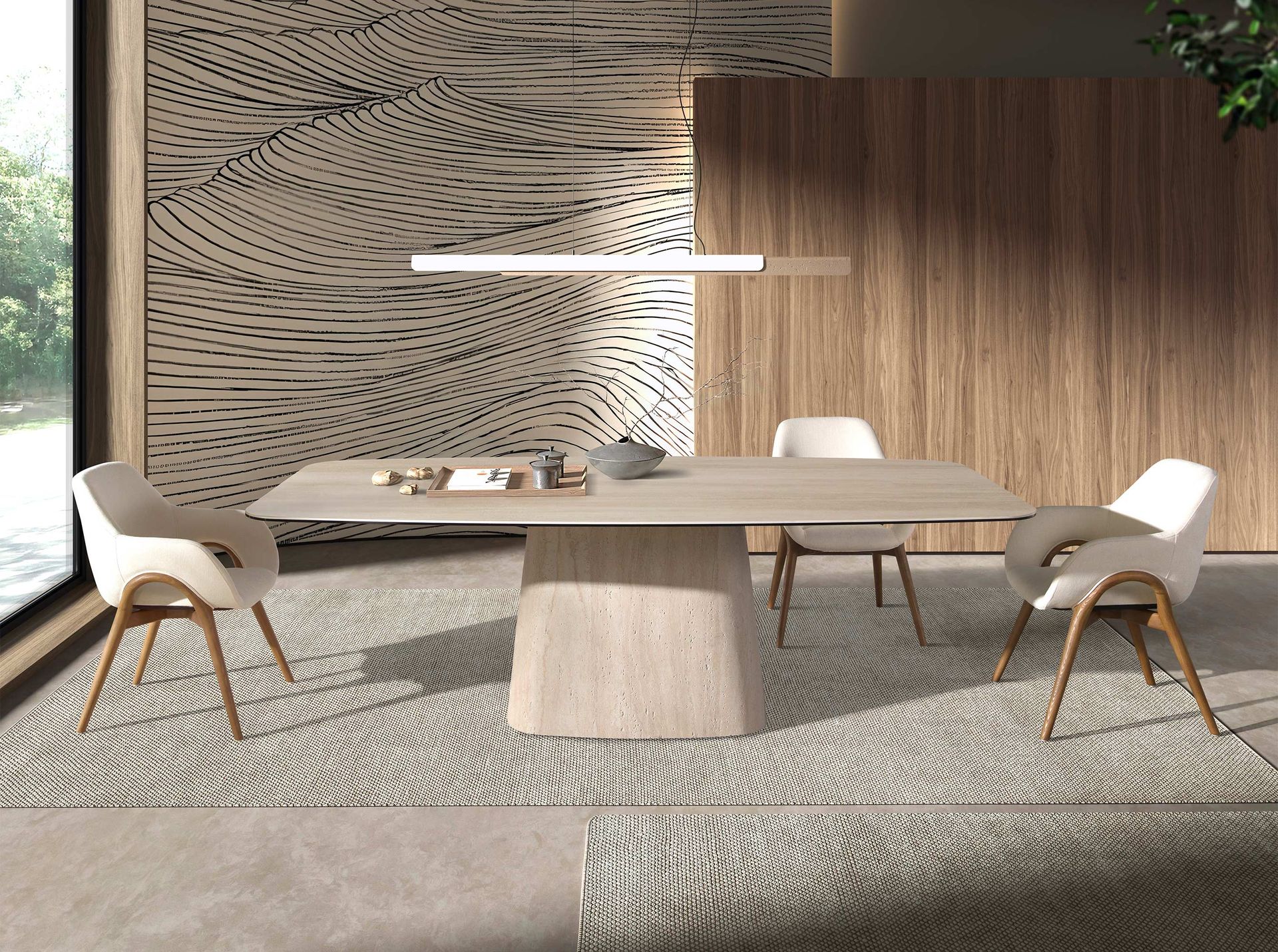 Овальный обеденный стол 1171 из керамики песочного цвета