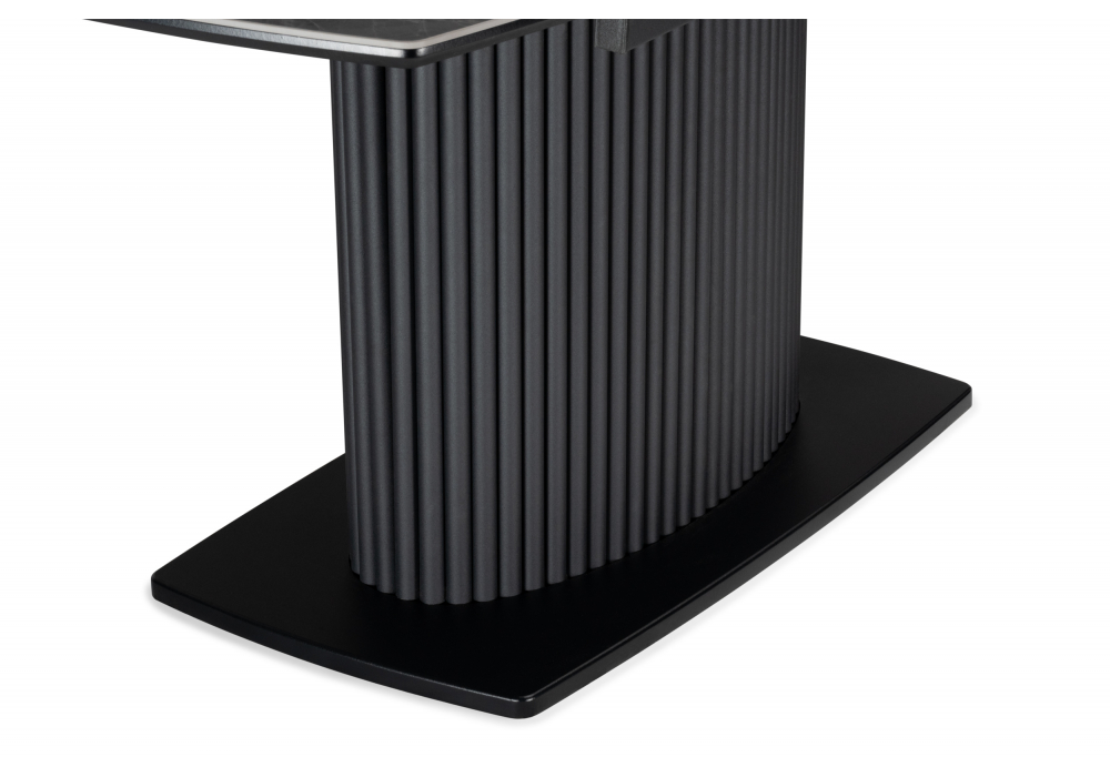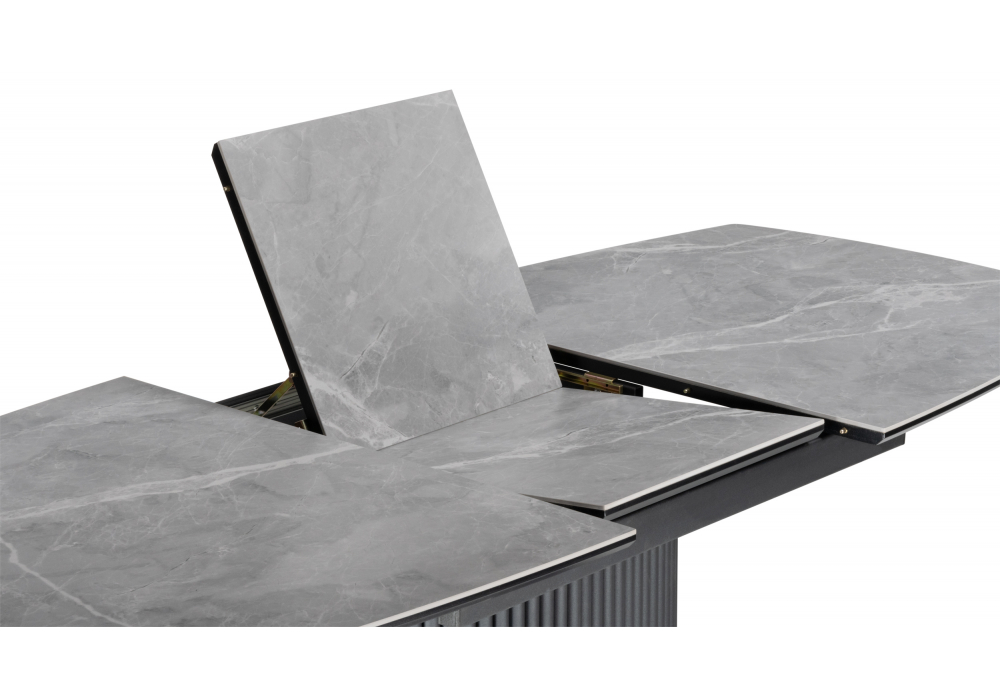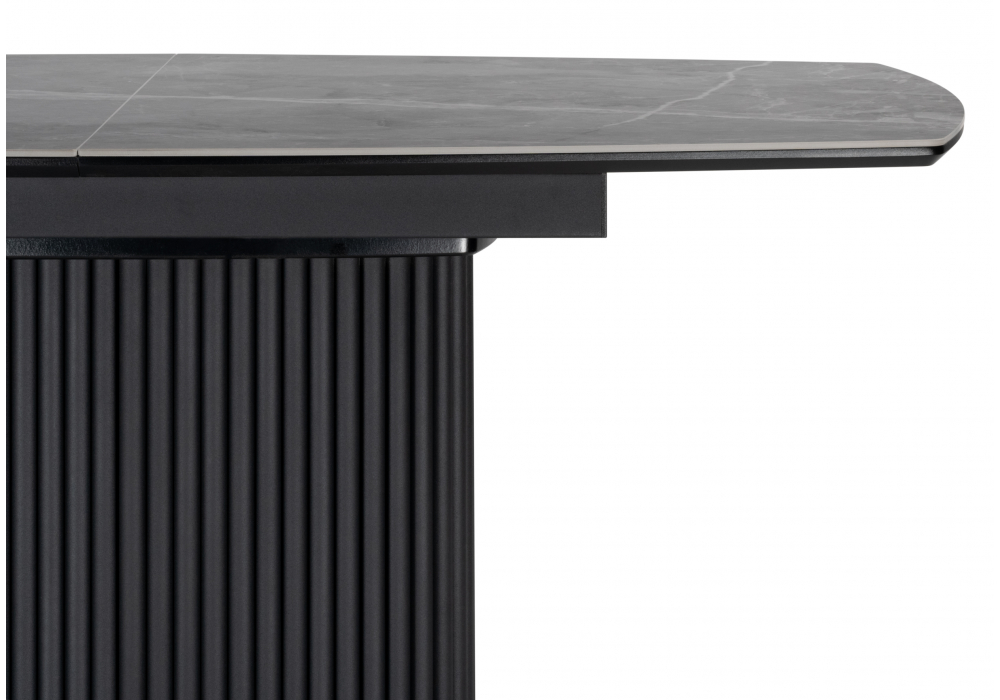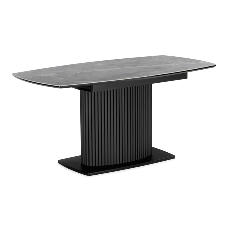 Керамический стол Фестер 160 (205) х 90 серый мрамор / пленка черная / ноги черные