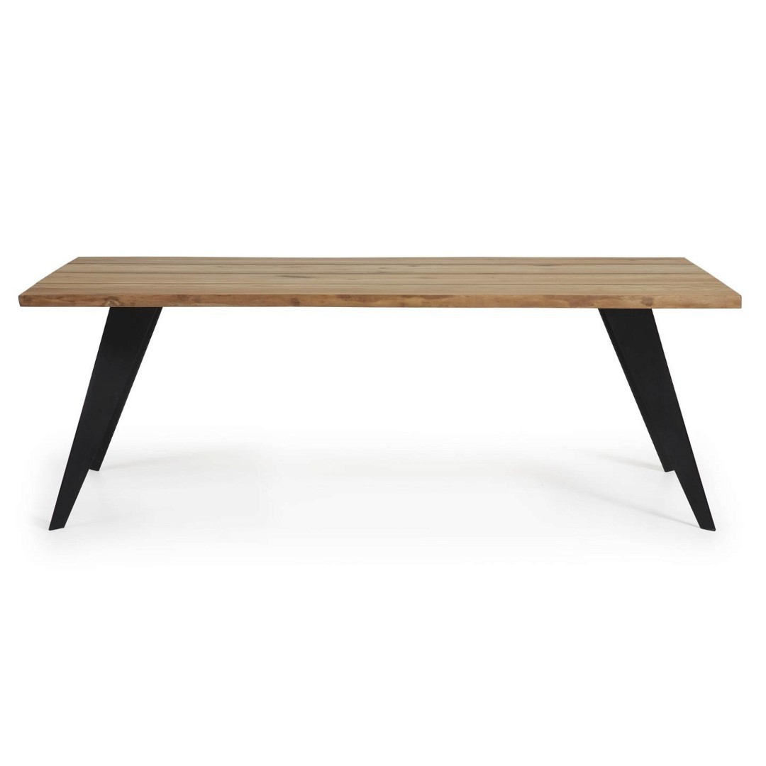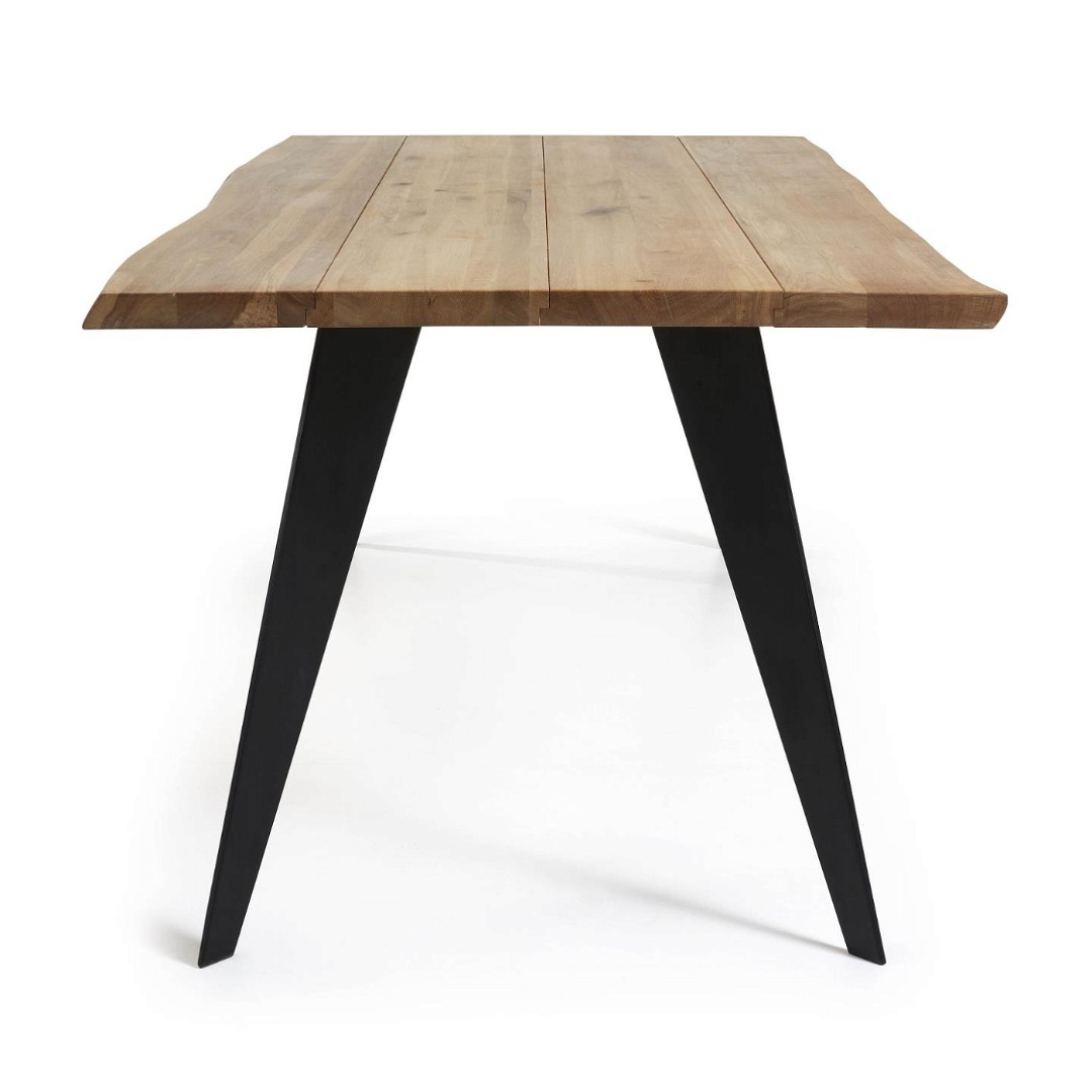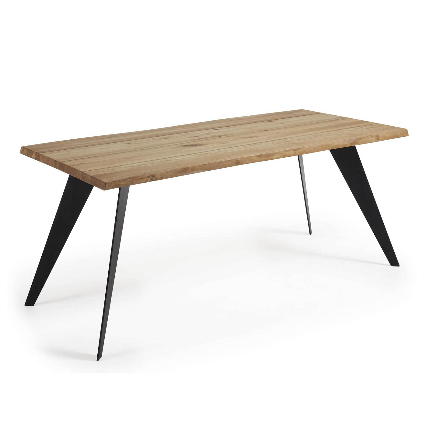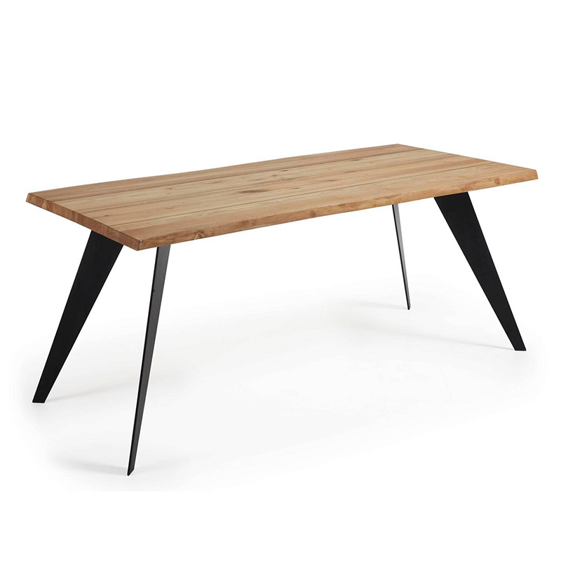 Запросить индивидуальное предложениеСтол Nack из дуба от фабрики La Forma – когда гармония дерева и металла создают яркий минимализм. Стол Nack – это модель, в которой тесно переплелись два стиля. Четкая геометрия металлических ножек – явный элемент минимализма, а деревянная столешница с натуральной фактурой – безусловный признак скандинавского стиля. Такая модель однозначно придаст городскому интерьеру оригинальность и добавит авторского стиля. Стол прямоугольной формы. Столешница сделана из массива дуба. Она имеет толщину 4 см, покрыта лаком для защиты от влаги и загрязнений при эксплуатации. Для акцента на натуральность древесной породы, боковые грани имеют неровные срезы, а поверхность в точности передает природную красоту дерева. В зависимости от выбранной модели, цвет столешницы может быть светло-бежевым (беленый дуб) или коричневым (античный дуб). Ножки сделаны из металла и покрыты черной порошковой краской. Они треугольной формы, с шириной грани у основания 19 см. Для защиты напольного покрытия от повреждений на каждой ножке есть наконечник. Цвета отделки указываются в соответствии с каталогом производителя. Допускается незначительное отклонение в цвете, обусловленное техническими особенностями цветопередачи фотографий.
